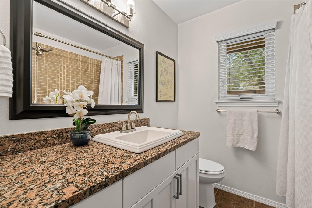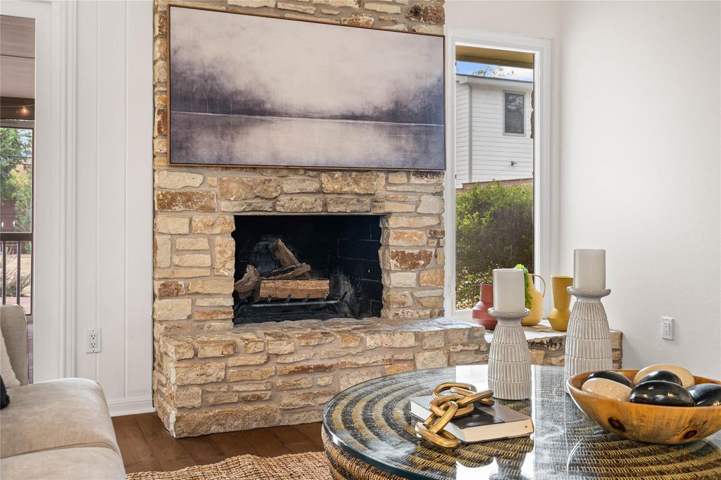 Beautifully updated & lovingly maintained, this ranch style home is situated on a half-acre lot in the heart of Shady Hollow. The flex room right off the foyer can be used as an office, playroom, or formal dining room! Soaring living room ceiling, natural light, accent beams, and a wood-burning fireplace create a warm, inviting space at the center of the home. The recently updated kitchen was designed with the cook in mind & allows them to enjoy their family & friends. More kitchen updates include custom cabinetry, quartz countertops, recessed lighting, and stainless steel appliances. A glass sliding door leads out onto the enclosed patio- perfect for morning coffee, entertaining, or curling up with a good book! The spacious primary bedroom has a private en suite bath. The renovated primary bath has a new dual vanity and spacious walk-in shower with recessed lighting. The 3 spacious secondary bedrooms share a full bath. The lush backyard has a large open area for outdoor games, a patio, new fence, new trees, and room for a pool! Some of the updates include: New septic, landscaping, and air duct system done in 2021; New paint & carpet in 2022, New Pella windows, front door, and recessed lighting in 2023; Kitchen renovation in 2024; New irrigation and 27 trees added in 2025. Zoned to the award-winning trio, Baranoff, Bailey, and Bowie High School! Neighborhood amenities include a community center, pool, park, tennis courts, basketball courts, and hiking trails.