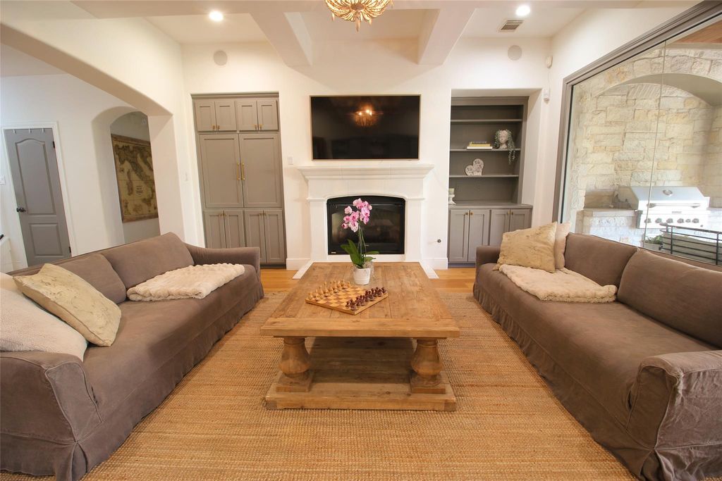 Charming home in the gated golf course enclave of The Greens at River Place. Tucked away on a quiet cul-de-sac this residence showcases Hill Country views, a villa-style pool, and premium finishes. Highlights include: 1st-floor primary suite; fully renovated full bathrooms featuring quartz countertops and heated floors; renovated half bath; renovated Gourmet kitchen w/stainless steel appliances; wide-plank oak flooring; spacious bonus room with built in cabinetry and work area; and a back patio with built-in KitchenAid stainless gas grill overlooking the pool, koi pond, and backyard.