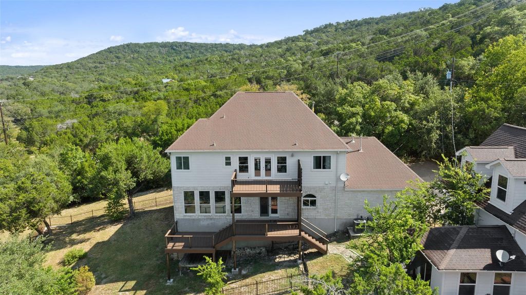 Lake Travis Waterfront Home with Hill Country Views! Nestled on a spacious lot beneath mature trees, this inviting property blends lakeside living with everyday convenience. Designed for flexibility, it's ideal as a full-time residence, weekend retreat, or income-producing vacation rental. Inside, natural light pours through walls of windows, framing sweeping views of Lake Travis and the surrounding Hill Country. Open living and dining areas create space for entertaining, while the functional kitchen anchors the home. Generously sized bedrooms and flexible spaces provide room for family, guests, or a home office. Outdoor living is the highlight here"”expansive multi-level decks offer endless opportunities to enjoy lake views, sunsets, and gatherings under the Texas sky. A private path leads to the water's edge, where you can kayak, fish, or simply relax by the shore. The oversized lot also offers ample parking and storage for boats, jet skis, or lake toys. Located minutes from Volente Beach, marinas, parks, dining, and shopping"”with quick access to FM 620 and Hwy 183"”this home combines the tranquility of Lake Travis waterfront living with the convenience of Austin's amenities. Whether you're searching for a family lake house, a serene retirement retreat, or a short-term rental investment, this property delivers the Lake Travis lifestyle you've been dreaming of.