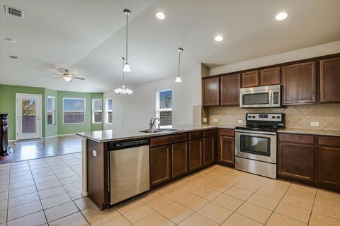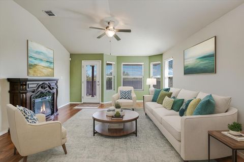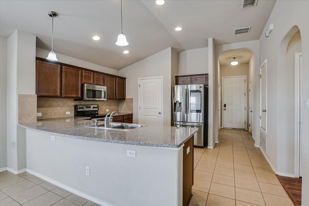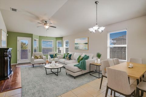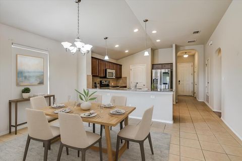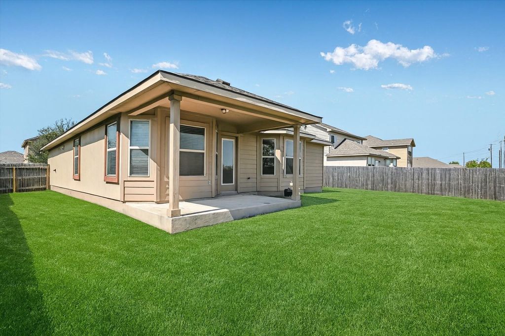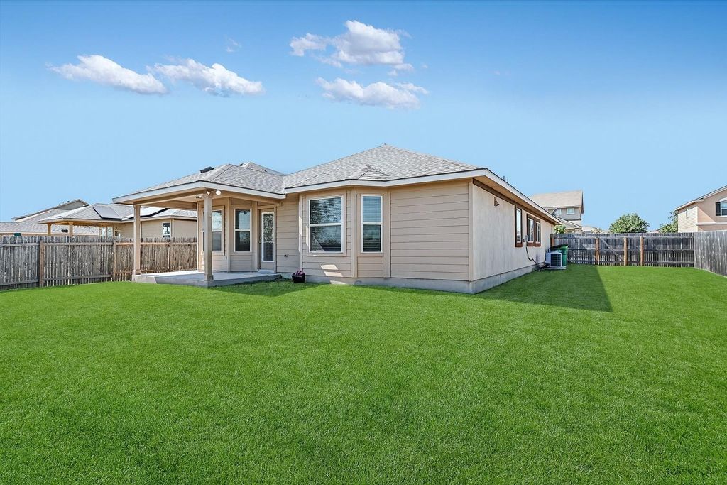 This 3-bedroom, 2-bath home in the Reserve at Westcreek has a single-level floorplan that keeps everything connected, with the kitchen, dining, and living areas flowing together so meals, gatherings, and downtime all happen in one bright, open space. The living room features an electric fireplace that adds a cozy touch, while a dedicated office provides a quiet spot for work or study. The primary suite with its own ensuite bath sits apart from two additional bedrooms and a second full bath, creating just the right amount of privacy. The covered back patio is the perfect spot to relax, with plenty of yard space and a greenbelt behind you for added privacy and a touch of nature. An 8-zone irrigation system keeps the lawn simple to maintain, so you can enjoy the outdoors without the extra work. Here, it's not only about the home, it's about the community that surrounds it. The community clubhouse is a hub for connection, offering a lounge, kitchen facilities, and a game room complete with pool, air hockey, and ping pong. A sparkling pool, tennis courts, playgrounds, and even a business center for remote work add to the neighborhood's appeal, while planned community events make it easy to get to know your neighbors. Just minutes away, you have Lake Pflugerville's miles of hike-and-bike trails, while Stone Hill Town Center covers your shopping and dining needs. Golf enthusiasts will love being close to Blackhawk Golf Club, and commuters will appreciate quick access to IH-35, Toll 45, and 130, making downtown Austin about half an hour away. Here, you get the comfort of a private home with thoughtful upgrades, the ease of low-maintenance living, and the bonus of a connected, amenity-rich neighborhood. It's a community where everyday life feels a little easier and a lot more enjoyable! Buyer to verify all info.