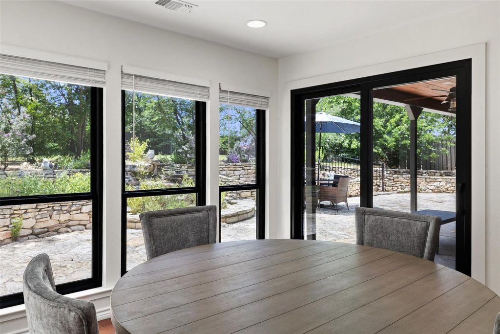 Welcome to 103 Schooner Dr"”an updated single-story retreat in the heart of Lakeway. This 4-bedroom, 2-bathroom home has been thoughtfully refreshed with high end Pella windows and Anderson sliding doors just installed in 2025, fresh interior and exterior paint, updated lighting and ceiling fans, luxury vinyl plank flooring in the bedrooms, a 50-gallon hot water heater installed August 2025, and a recently installed HVAC with WiFi thermostat. The kitchen shines with painted cabinetry, new hardware, and updated fixtures, while the living room is anchored by a stately stone wood-burning fireplace with a new mantle. Outdoors, sprinkler and landscaping improvements add convenience and curb appeal. Set on a generous 0.327-acre lot with mature trees and a spacious fenced backyard, the home offers timeless charm and modern comfort. Cathedral ceilings, skylights, and expansive windows create an airy, light-filled atmosphere, while the oversized sunroom connects seamlessly to the backyard and private primary suite. The large primary bedroom features a wood burning fireplace and a lovely bathroom with a jetted tub, walk-in shower, and dual closets, providing a serene retreat. A spacious covered patio extends the living space outdoors"”perfect for entertaining or quiet evenings under the Texas sky. An attached two-car garage and flexible layout make everyday living easy. Located in highly rated Lake Travis ISD and minutes from Lakeway Marina, golf, trails, and boutique shopping, 103 Schooner Dr combines classic architecture with modern upgrades. With no HOA and a low tax rate, it's a rare find in Old Lakeway. Elegant, inviting, and move-in ready"”this is Lakeway living at its finest.