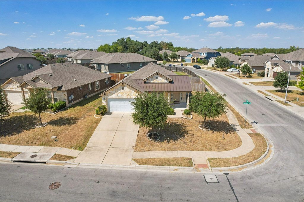 Perfectly positioned on a desirable corner lot in Pflugerville's sought-after Fort Dessau community, this beautiful single-story home offers an ideal combination of location, space, and functionality. Its strategic placement provides an effortless commute to North Austin's major tech employers, including Samsung and Dell, with swift access to both SH 130 and I-35. Step inside to discover a bright and welcoming open-concept floor plan spanning 1,750 sq ft. The expansive living room flows directly into the dining area and kitchen, creating an inviting space for gathering. At the front of the home, a dedicated office with elegant French doors provides a quiet workspace or can easily serve as a fourth bedroom, offering valuable flexibility. The well-appointed kitchen is equipped with granite countertops, a gas range, and ample cabinet storage, making meal preparation simple and enjoyable. The private primary suite is thoughtfully located at the rear of the home for maximum tranquility and features a generous ensuite bathroom with a dual vanity and a spacious walk-in closet. Two additional secondary bedrooms are situated in a separate wing, sharing a full bathroom. Outside, the covered patio overlooks a sizable backyard, offering a blank canvas for gardening, play, or relaxation. Residents of Fort Dessau enjoy access to fantastic community amenities, including a swimming pool, park, and playground. The location is just minutes from premier shopping and dining at Stone Hill Town Center and La Frontera. This property represents an outstanding opportunity to own a versatile home in a thriving, convenient location.