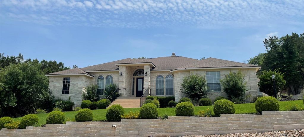 Welcome to this elegantly appointed residence located in the highly desirable Lakeway community and the Lake Travis School District. This spacious home features generously-sized bedrooms, a chef-inspired kitchen with stunning quartz countertops, custom cabinetry, 2 fireplaces, and multiple living areas"”all seamlessly connected by an open-concept floor plan ideal for entertaining. The abundance of natural light enhances every space, while the three-car side-entry garage and expansive driveway offer ample parking and storage. Step outside to a beautifully manicured lawn adorned with lush landscape and mature trees offering complete privacy, a covered patio perfect for outdoor gatherings, and a fully fenced backyard"”ideal for children or pets. Conveniently situated just minutes from Lake Travis and with easy access to major roads and highways. This custom single story home on .33 acres offers both tranquility and connectivity.