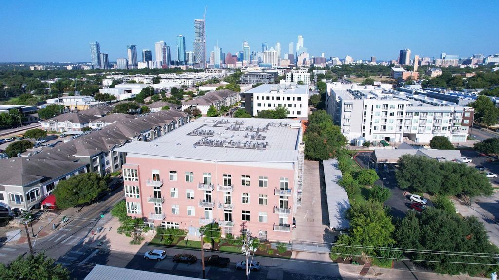 Enjoy stunning Downtown Austin views from the top-floor balcony of this stylish residence in the heart of 78702, just one mile from I-35. Made from steel, concrete, metal, stucco, and reclaimed brick from a Chicago warehouse, the building is solid as a rock. Offering true loft-style living, this home features polished concrete floors, exposed ductwork, high ceilings, and contemporary track lighting throughout. The modern kitchen is equipped with stainless steel appliances, granite countertops, a travertine tile backsplash, and a custom-built island"”perfect for both cooking and entertaining. Expansive Pella windows flood the space with natural light while maintaining energy efficiency. The primary suite includes a dual-sink vanity and a convenient stackable washer and dryer. A second bathroom offers a sleek stand-up shower and European sink. A custom designed bedroom wall with built-in closet space adds both function and flair. Ideally located just minutes from some of East Austin's best dining, bars, breweries, coffee, hotels, and entertainment options, this home offers the perfect blend of urban living and modern comfort. HOA fee covers water, sewer, trash, recycling, parking, and landscaping.