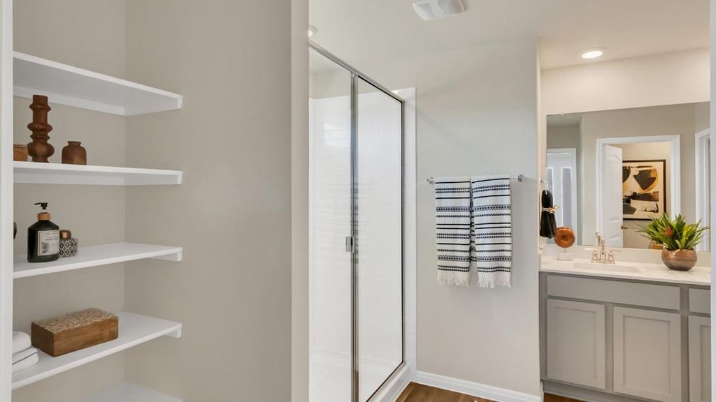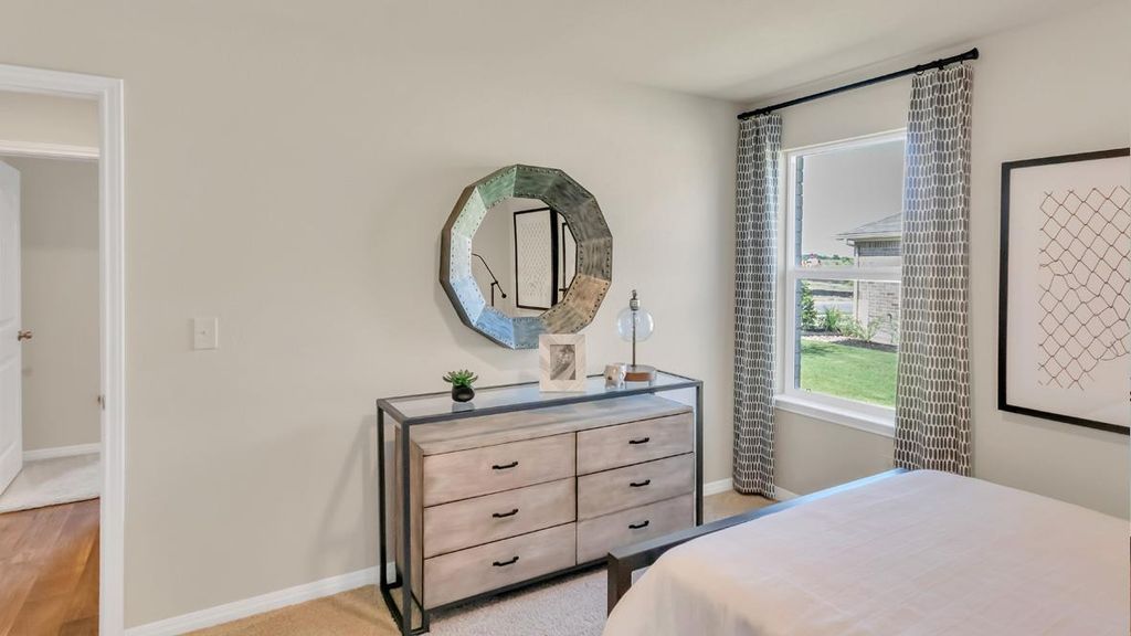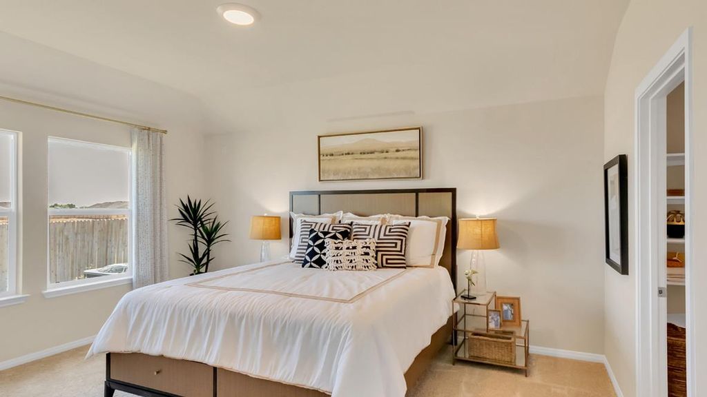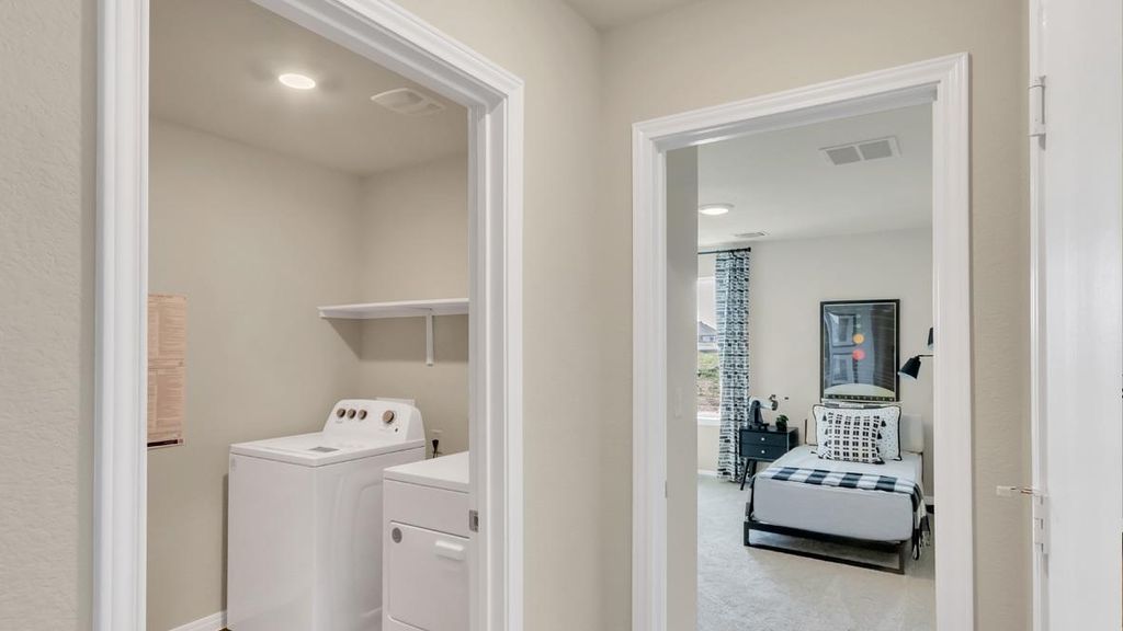 UNDER CONSTRUCTION - EST COMPLETION NOW!!!!!!!!!!!!!!!!!!!!! Photos are representative of plan and may vary as built. Step into the Irvine is a single-story home that offers 1,796 square feet of living space in our Carillon community in Manor, TX. The Irvine is the perfect place to call home with a two-car garage, four bedrooms and two bathrooms. When you enter the home, a long foyer will take you past the three spare bedrooms, the guest bathroom and utility room. As you enter into the heart of the home you are greeted with the open kitchen, breakfast nook and family room. The kitchen features a large kitchen island, perfect for entertaining, a walk-in pantry and stainless-steel appliances. The breakfast nook opens to the covered patio and backyard. The main bedroom, bedroom 1, is just off the family room at the back of the home offering privacy. Bedroom 1 features a large ensuite with a large walk in closet. This home comes included with a professionally designed landscape package and a full irrigation system as well as our Home is Connected base package that offers devices such as offers devices such as a Video Doorbell, Deako Smart Light Switch, a Honeywell Thermostat, and more.