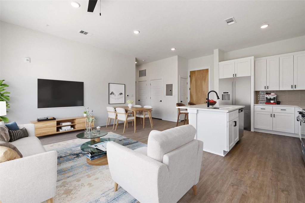 ***Builder is offering 15k flex cash on select units*** Discover East Grove: A gated East Austin community with no short-term rental restrictions, modern architecture, sustainable features, and everyday functionality. The Baxter plan (Unit #1305) is a light-filled, single-level condo offering soaring ceilings, oversized windows, and a rare combination of covered parking plus private storage. Inside, the open-concept layout features a center island kitchen with quartz countertops, ceramic tile backsplash, and soft-close cabinetry makes it perfect for entertaining or daily ease. The two-bedroom, two-bath layout offers flexibility for working from home, hosting guests, or sharing the space. The private primary suite includes a spacious walk-in shower and dual vanity with quartz counters. ***Multiple Homes Available*** Designed by award-winning Danze & Davis Architects and built by trusted local builder True North Homes, East Grove is Austin Energy Green Building certified and constructed with long-term durability in mind by featuring Low-E windows, airtight poly-sealing, high-efficiency HVAC, and tankless gas water heaters. Residents enjoy elevator access, concrete sound barriers, and thoughtful "lock-and-leave" living. Additional amenities include a rooftop deck with skyline views, guest parking, and easy access to CapMetro lines 5 & 18. Just minutes from Mueller, UT, Downtown, and Austin Bergstrom Airport, East Grove is more than just another building. It's sustainable smart living in the heart of the city.