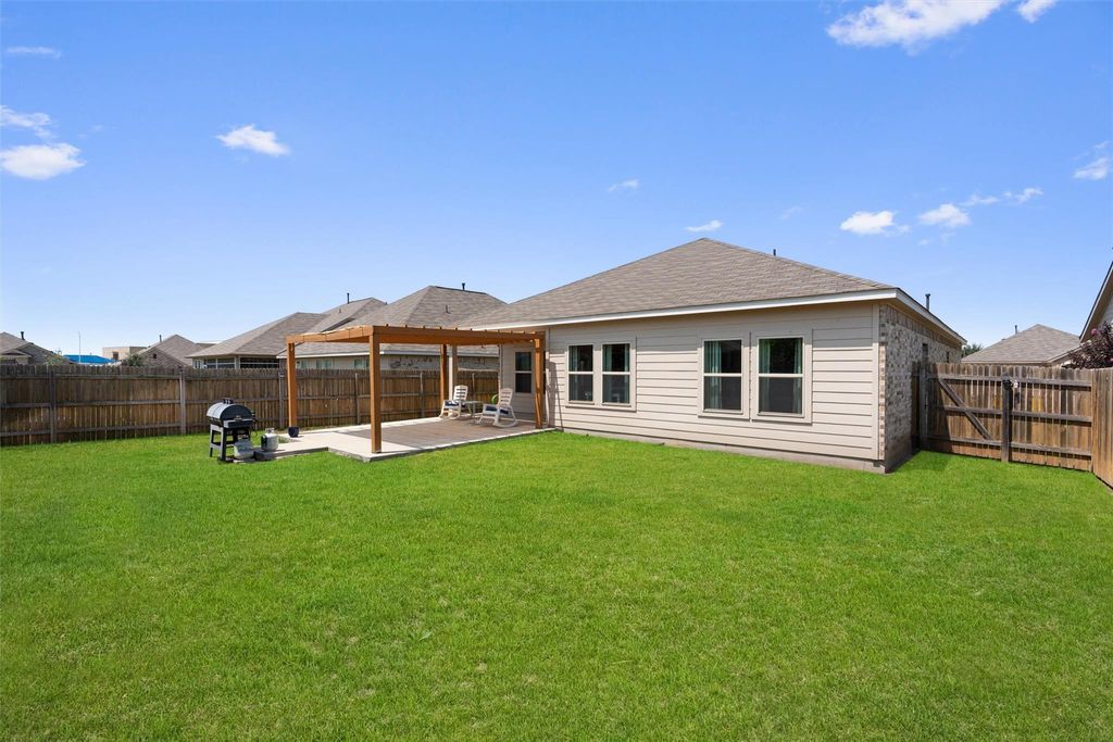 Beautiful 3BD/2BA single-story home in Lagos! Built in 2018, this 1,807 sq. ft. home features a functional open floor plan with hardwood floors in the main living areas and abundant natural light throughout. The kitchen flows into the dining and living spaces, perfect for entertaining, while the spacious primary suite offers a walk-in closet, soaking tub, and separate shower. Secondary bedrooms are generously sized, providing flexibility for family, guests, or a home office. Additional highlights include being pre-wired for security, a full sprinkler system, a beautiful custom pergola with a covered patio, all appliances (refrigerator, washer, and dryer), and a 120V generator for added peace of mind. The location is a standout: enjoy quick access to SH-130 and 290 for smooth commutes. Minutes from the brand-new H-E-B shopping center and surrounding retail development, with close proximity to Samsung, Applied Materials, and Tesla GigaTexas. Just 20 minutes from both The Domain and Austin-Bergstrom International Airport. Community amenities include parks and trails, all within one of the fastest-growing areas in Central Texas. This home is move-in ready and a smart choice for buyers looking for both comfort and convenience.