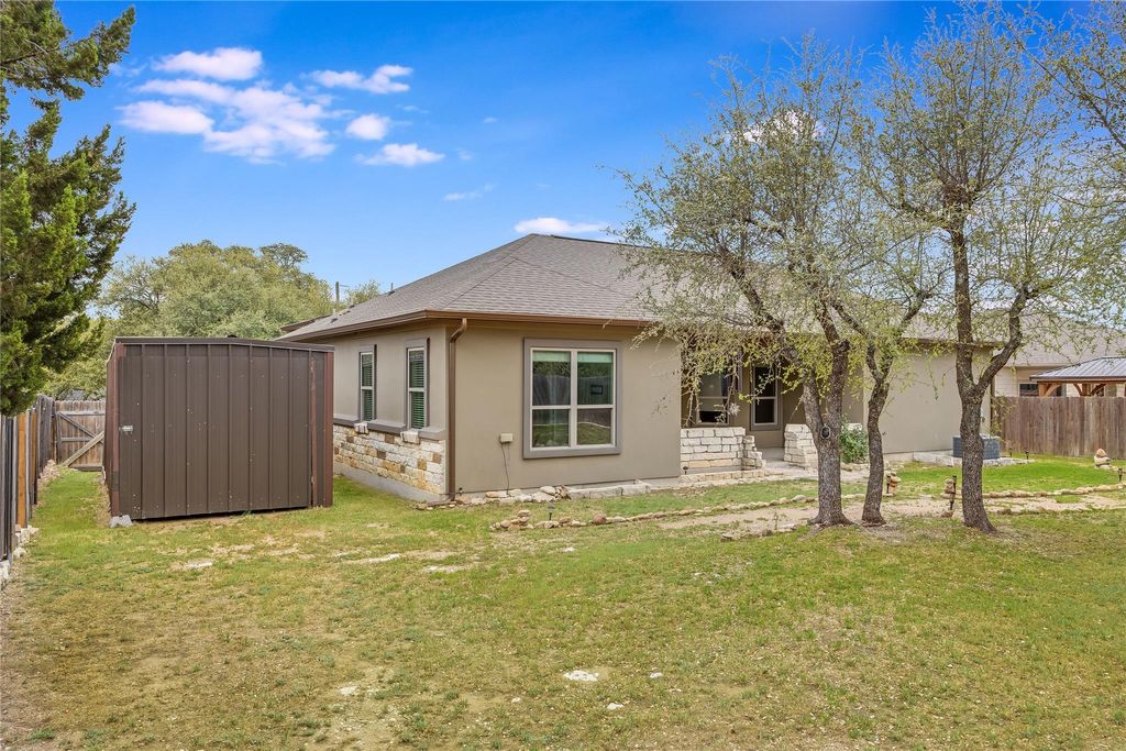 Enter this oasis where the custom solid steel front door opens to beautiful stone work and archways that add character to this charming abode. This beautifully built 3-bedroom, 2-bath house with a dedicated office/flex space offers an open floor plan with a formal dining room, gorgeous fixtures and high ceilings, creating a sense of spaciousness and elegance. Each room was thoughtfully designed for comfort and style. The gourmet kitchen is equipped with stainless steel appliances, cooktop, built-in oven, soft close drawers and ample storage space. Enjoy the fire pit on the large covered outdoor patio, perfect for dining or entertaining. There is a conex storage unit on the side of the yard for your personal toys such as golf cart, jet skies, or just storage! Short distance to the Lago Vista Golf Course, The Bunker Bar & Grille and Arrowhead Park. Enjoy Lago Vista's winery, brewery, area golf courses, marinas, and performing arts, or take a 40-minute drive to downtown Austin or a 30-minute drive to The Domain to employment centers and entertainment offerings. For a minimal $20/month fee, you become members in the Lago Vista Property Owners Association with exclusive access to 9 private waterfront parks, basketball court, boat ramps, campground, disc golf course, fishing well, fitness center, hiking trail, marinas, parks, pavilions, pool, athletic field, tennis courts, pickle ball courts, playgrounds and more!