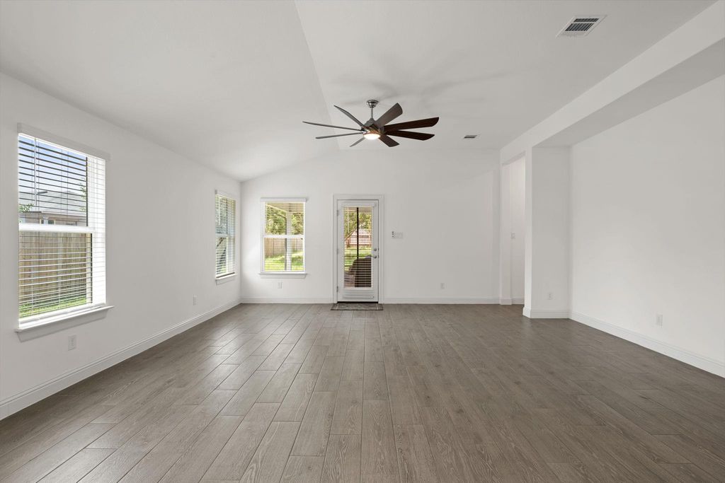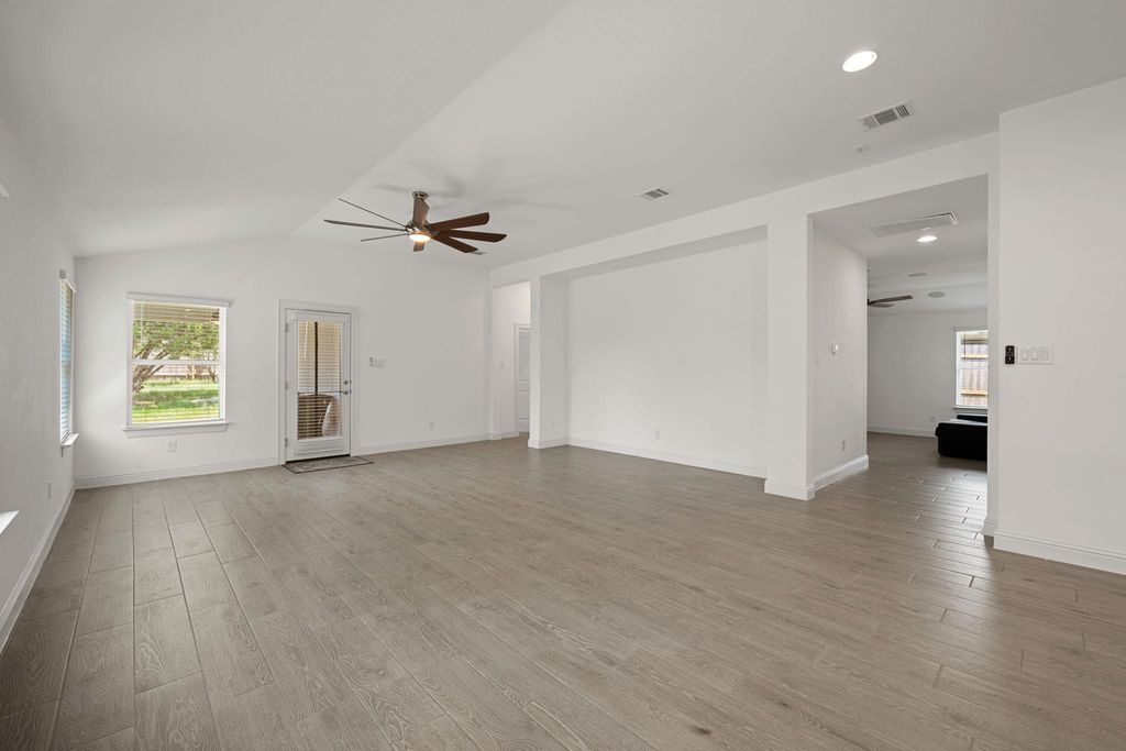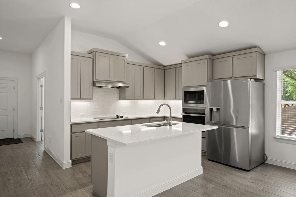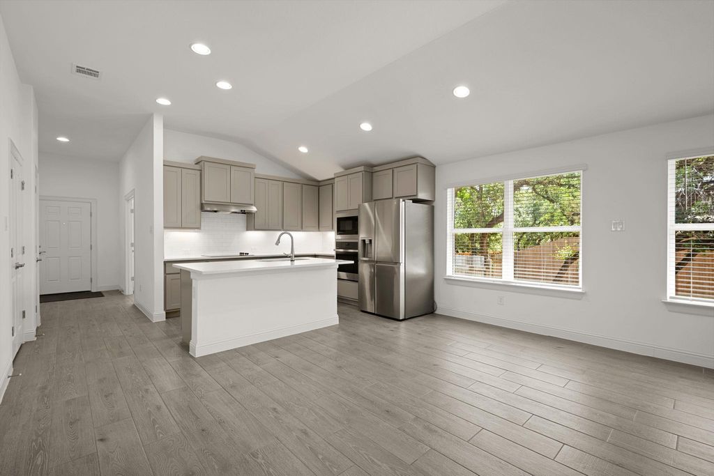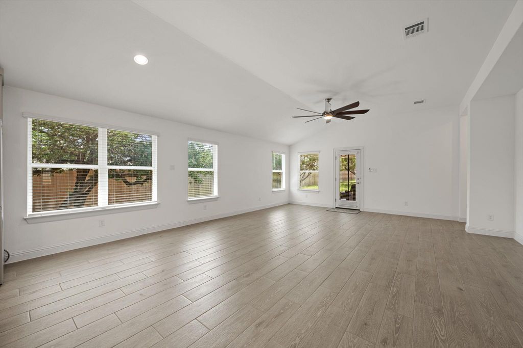 Nestled in the serene Texas Hill Country, this stunning 3-bedroom, 2-bath, 3 car garage home boasts an inviting open floor plan, seamlessly connecting the kitchen, dining, and living areas"”perfect for entertaining or everyday comfort. A dedicated study with double doors offers versatility as a guest room or home office. The separate family room provides a cozy retreat, while abundant natural light enhances the home's bright and airy feel. The spacious kitchen is a chef's dream, featuring a large island with bar seating, upgraded stainless steel GE Profile appliances, 42" cabinets, under-cabinet lighting, and sleek Quartz countertops. The luxurious primary suite includes an extended 5x3 walk-in shower with body sprays, a handheld wand, and comfort-height vanities. Thoughtful upgrades everywhere, from wood-like designer tile throughout to upgraded Delta Woodhurst fixtures, a smart thermostat, and Cat6 wiring. Outdoor living shines with a covered patio, oversized backyard with an 8-foot fenced perfect for privacy. The backyard is pre-wired and ready for a hot tub and pool. The oversized 3-car garage offers ample storage and a Tesla Charger/EV ready 60-amp outlet. Enjoy the best of both privacy and community with nearby parks and river access. Experience modern living with premium upgrades in a tranquil neighborhood!