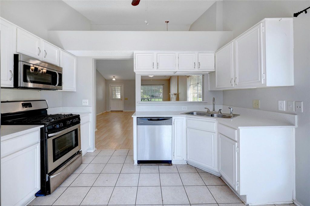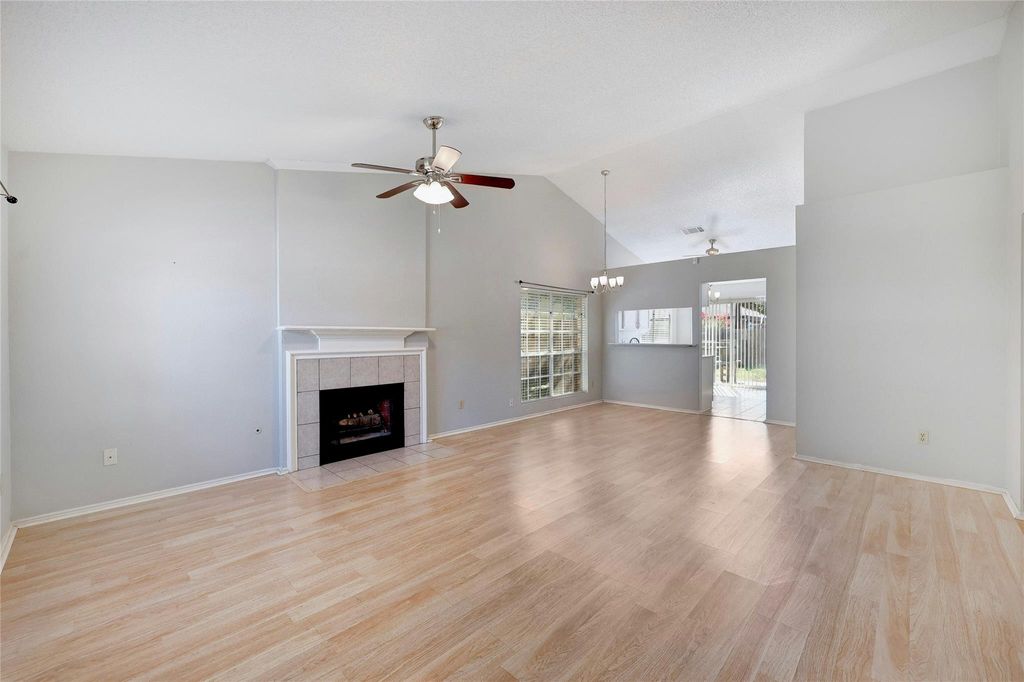 Welcome to this stunning 3 bed, 2 bath home in the heart of Pflugerville! Be captivated by the grand living room featuring soaring high ceilings, a cozy fireplace, and expansive large windows that flood the space with natural light. Enjoy the luxury of no carpet throughout the home, offering a clean and modern look with sleek flooring. The kitchen is a chef's dream with stainless steel appliances, quartz countertops, and ample cabinetry. The master suite is a true retreat, complete with a dual vanity and an oversized walk-in closet. Step outside to the beautifully landscaped backyard, fully fenced for privacy and adorned with mature trees providing a serene atmosphere. This home is a perfect blend of comfort, style, and convenience. Don't miss out on making it yours!
