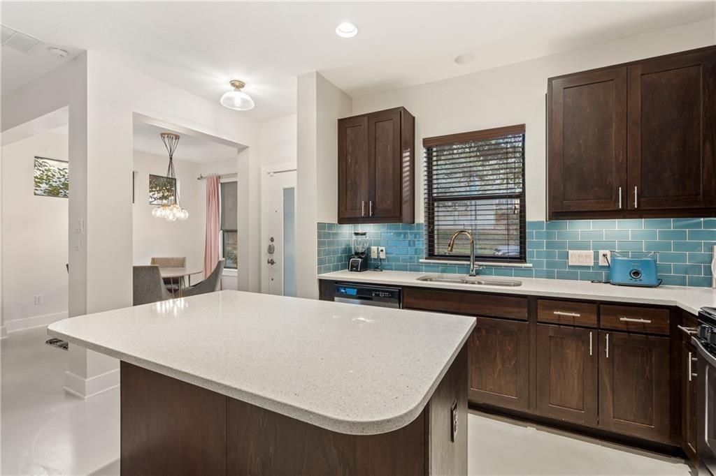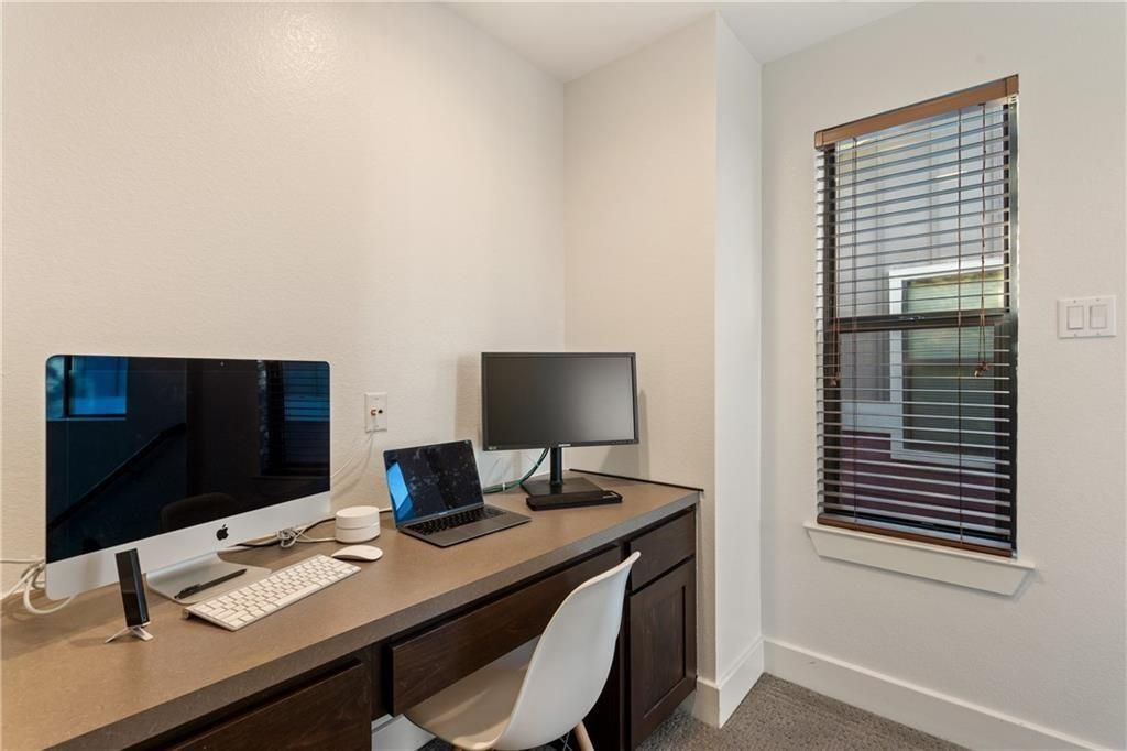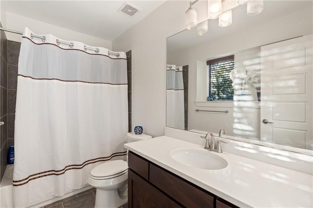 Beautiful two bedroom, 2.5 bath move-in ready condo located in the gated community of Edgewick. There is plenty of natural light ,upgraded fixtures and modern finishes throughout. Smart connections include an ecobee thermostat, ring doorbell / security, and touch kitchen faucet. This property includes everything you need including refrigerator, washer/dryer, tv wall mount and surround sound audio. The detached garage and driveway allow for assigned parking of 2 vehicles but there is some shaded parking out front as well. Enjoy life unplanned with a maintained and fenced courtyard and convenient location close to the airport, Lady Bird Lake, Downtown, etc. Amenities include a pool and again, good parking along the street out front (rare for this location)