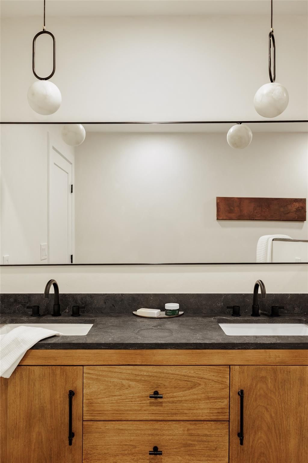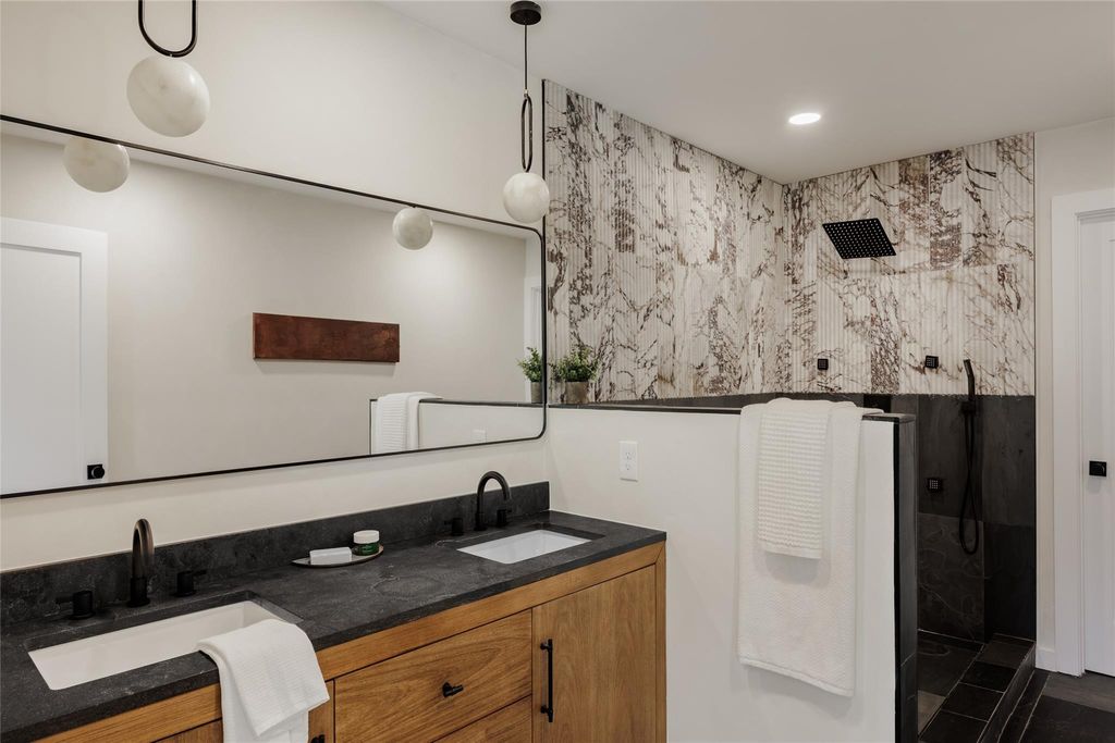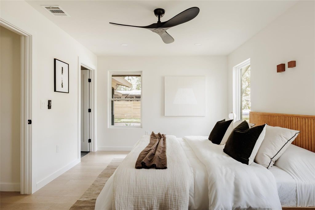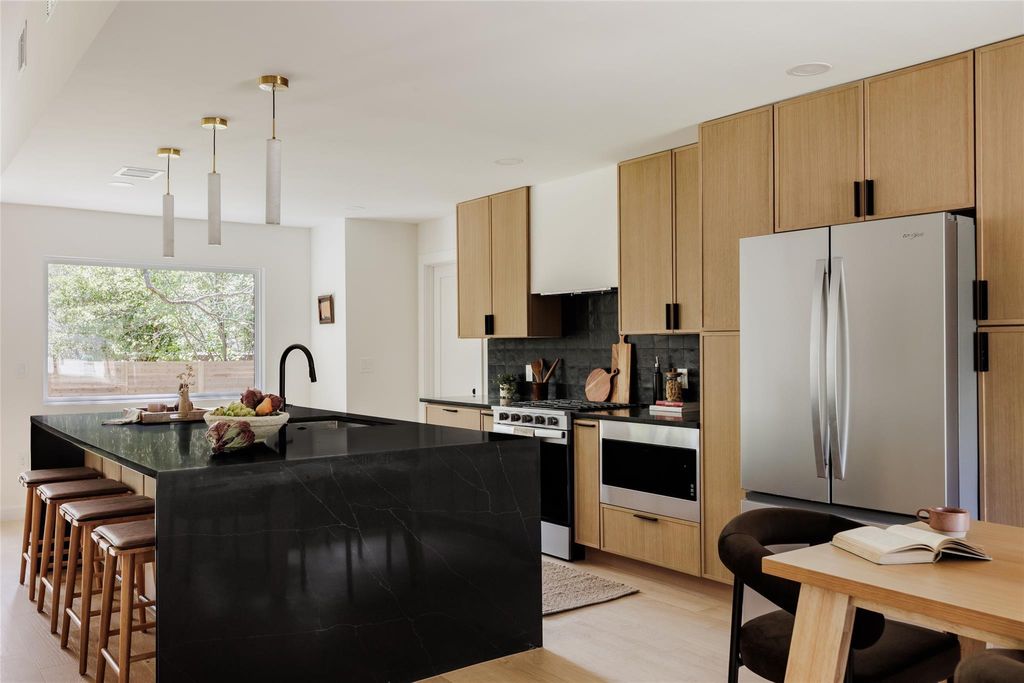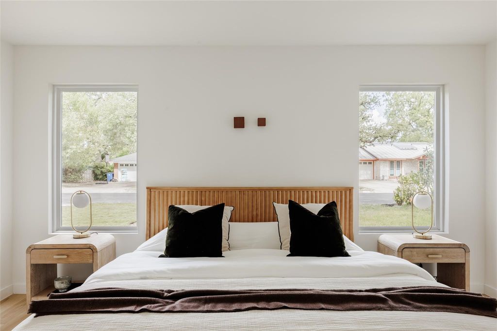 Gorgeous mid-century restoration in the coveted Windsor Park neighborhood! :: Open & bright concept living with an abundance of natural lighting. :: Stunning kitchen boasting brand new oak cabinets, Cobalt quartz countertops w/ amazing waterfall island, Full appliance suite and wine bar. :: Spacious primary bedroom w/amazing bathroom ensuite showcasing a spa-like walk-in shower. :: New Oak Engineered wood floors throughout. :: Custom designer tiles and fixtures. :: System upgrades include all new PVC plumbing system, new water lines, sod & irrigation, full rewire with Romex, new HVAC system, Black/White Vinyl Windows and new wood fence. :: Minutes to Bartholomew Park, HEB, Dell Children's, University of Texas and Downtown Austin