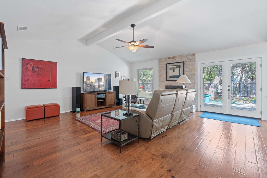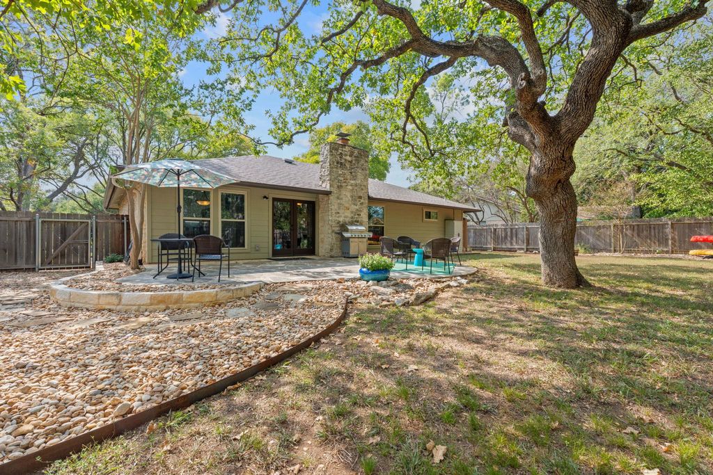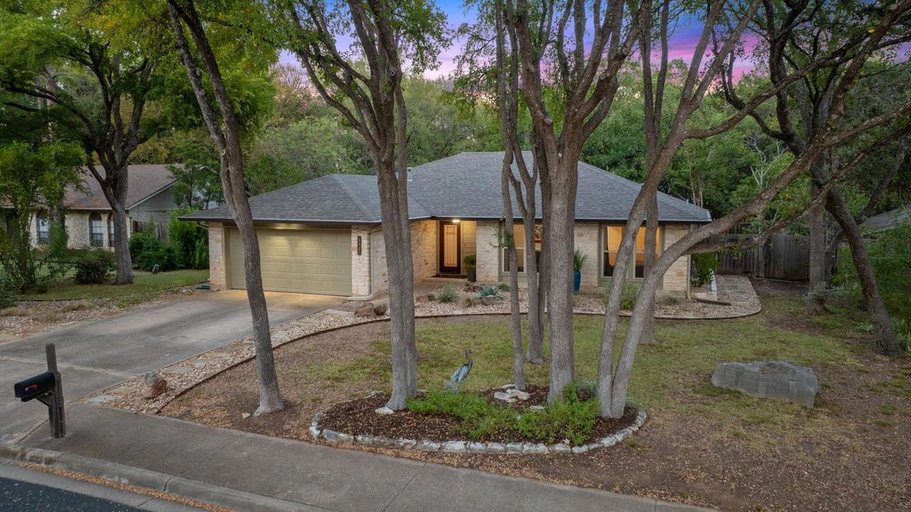 Beneath a canopy of heritage oaks in sought-after Travis Country, this updated single-story home combines natural beauty with modern comfort. The limestone exterior and xeriscaped landscaping create charming curb appeal, while inside, vaulted ceilings, hardwood floors, and a cozy stone fireplace set the stage for warm, inviting living. The open floor plan flows seamlessly from the spacious living area into a bright dining space and fully renovated kitchen featuring quartz countertops, stainless steel appliances, custom cabinetry, and a stylish backsplash. The private owner's suite offers dual vanities and a walk-in shower, while two secondary bedrooms and an updated bath provide flexibility for family, guests, or a home office. Step outside and enjoy your own shaded sanctuary: a stone patio perfect for entertaining, a fenced backyard with mature oaks, and peaceful greenbelt-style privacy. Twilight views highlight the home's charm, while aerial perspectives reveal the unbeatable location "” minutes to Barton Creek Greenbelt, downtown Austin, and top-rated schools. Stop by for a visit so we can welcome you home!