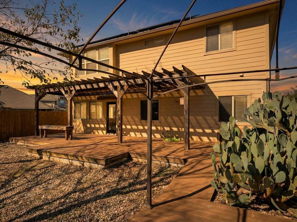 Nestled on a peaceful cul-de-sac, this beautifully updated residence has been meticulously refreshed with a contemporary palette, designer lighting, and seamless wood-look tile flooring. The property backs directly to a lush private greenbelt, offering serene views and no rear neighbors. The neighborhood trail entrance is located just next door, providing convenient access to the Colorado River and the Walnut Creek Trail system. The heart of the home is the expansive kitchen, which overlooks a light-filled living room. Retreat to the owner's suite featuring luxurious marble-look tile, or step outside to your private sanctuary. The backyard is designed for effortless enjoyment, featuring a Trex-style deck, a custom pergola, and a cozy fire pit"”all framed by tranquil nature views. The location perfectly balances seclusion with urban convenience; enjoy a morning stroll to Caffé Medici or a quick bike ride downtown via the nearby trail. With solar energy and a prime location less than 5 miles from the city center, this is sustainable urban living at its finest.