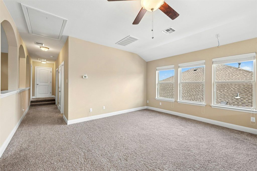 Discover this delightful single-family home in Falcon Pointe, a premier neighborhood located close to Austin, shopping, restaurants, various types of top-notch entertainment and major roadways. This home has been well-maintained by the original owners, and the property has been professionally inspected. The open floor plan allows for a seamless integration of the kitchen with the Family Room, making it ideal for entertaining and everyday living. With its soaring high ceiling and vaulted ceiling, it creates an airy and expansive atmosphere, perfect for relaxation and gatherings. The kitchen is designed to be both beautiful and functional, featuring ample counter space for meal preparation and a large Dining area to serve family and guests. Shaker cabinets provide stylish storage, stone countertops offer an elegant and durable surface with a tasteful backsplash, and a breakfast bar. The Primary Bedroom provides a private retreat, enhanced by a tray ceiling and bay window that adds architectural interest and a touch of sophistication. The bathroom offers a luxurious experience, featuring a custom, tiled walk- in shower with multiple heads, two separate vanities and a large walk-in closet. This home also includes a 2nd bedroom and full bathroom on the 1st floor (which could also be a Home Office) and 2 bedrooms on the 2nd floor, providing ample space for everyone. The expansive Game Room also includes space for a gaming table plus furniture along with a separate office area with a built-in desk and shelving which provides an ideal space for home organization or studying. Outside, the large, covered patio beckons for lazy afternoons and starlit evenings, while the fenced backyard offers a private oasis for relaxation, games, gardens, and gatherings with friends.