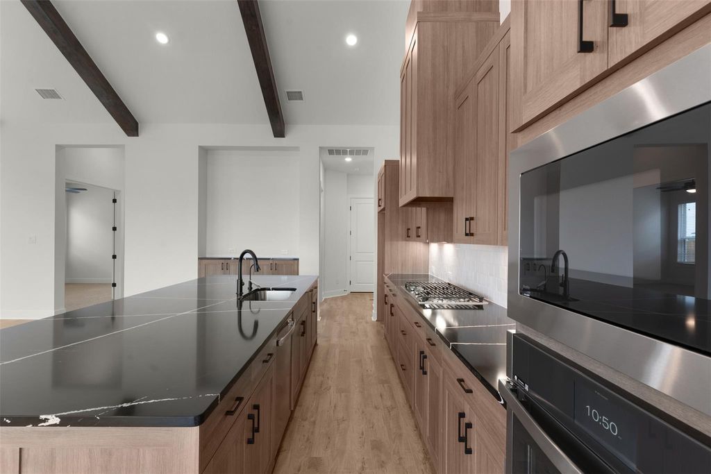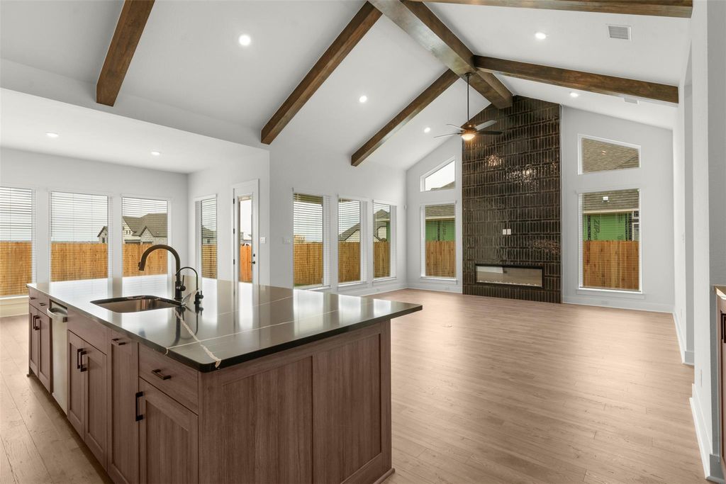 MOVE IN READY | 4 Beds | 3.5 Baths | Study | Game Room | 1-Story | 3-Car Tandem Garage | 2,846 Sq Ft | 60' Lot | The Draco is your forever home glow-up"”offering 4 beds, 3.5 baths, a study, and a game room, all thoughtfully laid out across nearly 2,850 sq ft of stylish, functional space. From the welcoming courtyard porch to the tray-ceiling foyer, this home makes a statement. Bedrooms 2 and 3 sit up front, each with walk-in closets and a Jack-and-Jill bath, while a private study with French doors and a game room add flexible space for work, play, or winding down. The vaulted, beamed family room is the heart of the home, featuring an electric fireplace with tile surround and natural light galore. The chef-inspired kitchen includes a massive quartz island, matte black hardware, soft-close cabinets with under/over LED lighting, and a walk-in pantry with bonus storage. An adjacent dining area adds easy flow. The primary suite is tucked in the back with tray ceilings, large windows, and a cozy bump-out. The ensuite bath feels spa-worthy with dual vanities with extra space, soaking tub, walk-in shower, and a huge closet that connects directly to the utility room. Bedroom 4 is in its own wing with a private bath"”perfect for guests or teens. Bonus perks include a floating vanity in the powder bath, hall tree drop zone near the garage entry, Delta matte black plumbing fixtures throughout, black-framed windows, LVP, tile, and carpet flooring, and a covered back patio on a 60' lot. Stop by our new model and ask about current buyer incentives"”The Draco is ready to impress!