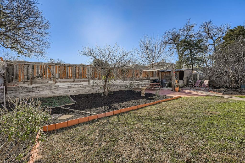 Beautifully updated and thoughtfully designed, this spacious 3-bedroom, 2-bath home sits on a lush, wildlife habitat-certified lot and features a versatile converted garage currently used as an art studio, offering 400+ square feet of additional air-conditioned space. The home's flexible floor plan is ideal for everyday living and entertaining, filled with natural light. The kitchen features stainless steel appliances and overlooks the peaceful backyard, creating an easy connection between indoor and outdoor living. With over $30,000 in recent improvements, updates include a roof replacement in 2026, concrete floor renovation, updated ceiling fans and kitchen chandelier, refreshed interior wall and door trim, and extensive garage upgrades including a mini-split A/C, bright white LED shop lighting, and additional insulation. The garage can easily function as a home office, gym, creative studio, or be used for car storage. Outdoor spaces are a true gardener's dream with impeccably maintained landscaping, rich garden soil, native plants, fruit-bearing peach, fig, nectarine, and pomegranate trees, a greenhouse, additional garden beds, patio shade, and string lighting. The backyard is perfect for a morning cup of coffee or your favorite evening beverage, with space to relax, entertain, barbecue, and enjoy visiting birds and butterflies. Set in a quiet, serene neighborhood with easy highway access to central Austin and located near the recently renovated neighborhood lap pool.