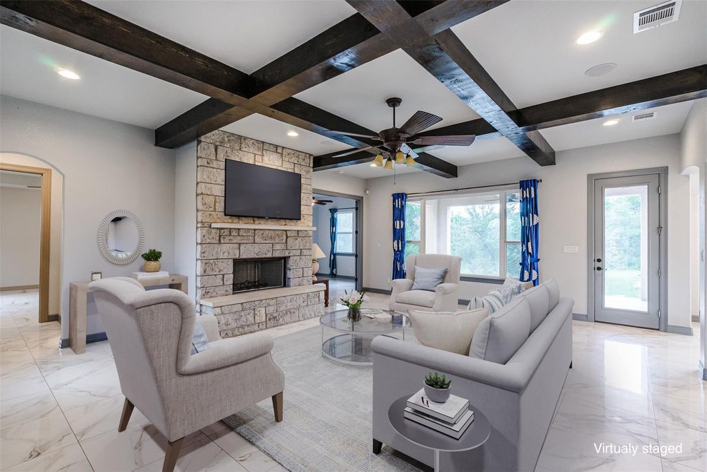 INTERIOR | Beamed Ceilings, Ceiling Fan(s), Chandelier, Double Vanity, Eat-in Kitchen, Elevator, Entrance Foyer, High Speed Internet, Kitchen Island, Master Downstairs, Open Floorplan, Recessed Lighting, See Remarks, Smart Home, Walk-In Closet(s) |