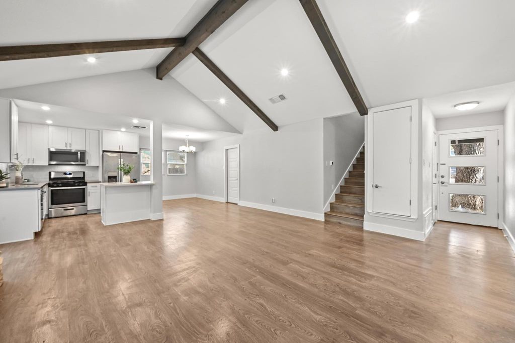 Move-In Ready! Welcome to your dream home in the desirable South Austin, 78745 area! This updated interior features modern aesthetic throughout, boasting 3 bedrooms and 2 bathrooms spread over a spacious two-story layout. The heart of the home is the airy, open living, dining, and kitchen area, complete with vaulted ceilings, exposed beams, and abundant natural light. Hard surfaces in kitchen with sleek cabinetry, stainless steel appliances, and a functional island. Each bathroom mirrors the home's contemporary vibe, adorned with stylish fixtures and finishes. Bedroom 1 and 2 on main level and Private Primary Retreat upstairs! Outdoors, a large backyard promises endless possibilities for entertainment under the shade of mature trees. A two-car garage, generous storage options, and proximity to local amenities make this home as practical as it is charming. Come and view this move-in ready gem of a home, where comfort meets convenience in the heart of South Austin!