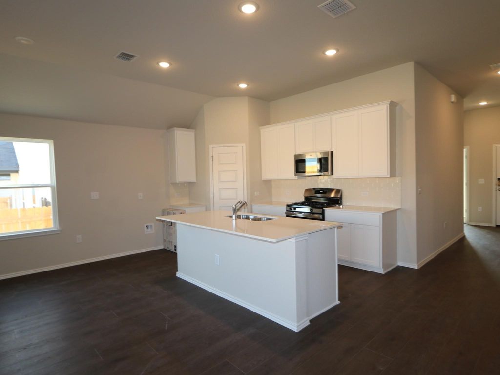 Located in Austin, the Garner floorplan is a perfect one story starter home. It features 3 bedrooms and 2 bathrooms with just over 1500 square feet. The Garner has a spacious living room, ample master bedroom, 10' ceilings and a large kitchen island. This home features luxury vinyl plank flooring, white cabinets, and quartz countertops, making it a light and bright color palate. This home also backs up to green space and is just two blocks away from our community's amenity center making it a perfect location to begin your journey of home ownership.