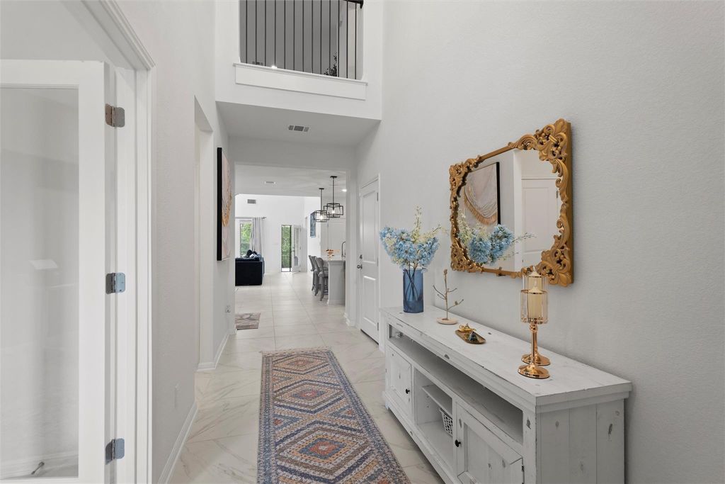 Welcome to this stunning 2022-built Taylor Morrison Bordeaux floorplan in the prestigious Travisso community, offering breathtaking Hill Country Greenbelt views right from your back patio. With 3,514 sq. ft. of thoughtfully designed living space, this home is packed with over $140K of upgrades and features 5 bedrooms, 4.5 bathrooms, a private office, formal dining, game room, and media room"”perfectly blending style, comfort, and functionality. The open-concept main level showcases a soaring two-story family room anchored by a gourmet kitchen with a large island, single sink, and bar seating. The luxurious primary suite offers dual vanities, a walk-in shower, and an oversized walk-in closet. A main-level guest suite with private bath adds convenience, while the dedicated office provides the ideal work-from-home space. Upstairs, enjoy a spacious game room and a separate media room for entertainment and family gatherings. Outside, the flat lot offers a large covered patio, generous backyard with greenbelt views, and room for a pool"”ideal for outdoor living. Community amenities include a clubhouse, fitness center, two resort-style pools, tennis, pickleball, bocce ball, basketball courts, soccer fields, scenic hiking trails, and even a pond for kayaking and paddle boarding. Located in highly acclaimed Leander ISD and close to shopping, dining, and major highways, this home combines tranquil Hill Country living with everyday convenience. Elegant, spacious, and move-in ready"”this home truly has it all.