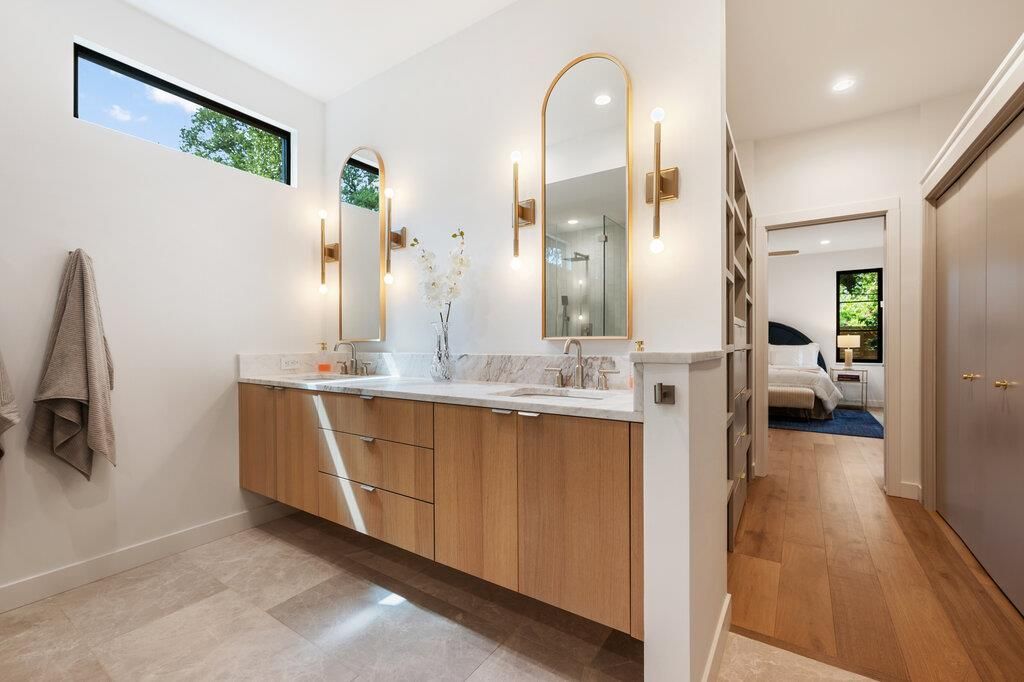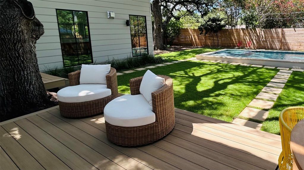 Welcome to this beautifully renovated home on Great Oaks, showcasing refined finishes and thoughtful design throughout. Step through the front door into a light-filled interior enhanced by RAM custom windows and custom wood shelving. The open-concept living and dining areas flow seamlessly into a stunning kitchen featuring durable quartzite countertops, premium cabinetry, and elegant details. The primary suite offers a serene retreat with Royale Sandblasted Marble floors and Calacatta Umber Honed marble in the bathroom, complemented by natural light and privacy. The guest bathroom continues the luxurious marble theme, while the kids' bathroom features soft satin quartzite. The laundry room includes natural limestone flooring and exotic granite countertops for both style and function. Natural stone finishes and high-quality materials create warmth and texture throughout the home. Step outside to your private outdoor retreat, featuring TimberTech decking, a heated pool, hot tub, natural gas grill, and a large outdoor TV, perfect for entertaining or relaxing under the mature trees. Located on one of Austin's most beloved tree-lined streets, this home is just steps from the Shoal Creek Trail, which leads you directly downtown. Enjoy easy access to top schools, parks, and the vibrant culture that makes Austin a unique destination. Experience the perfect balance of peaceful neighborhood living and city convenience.