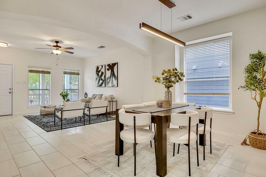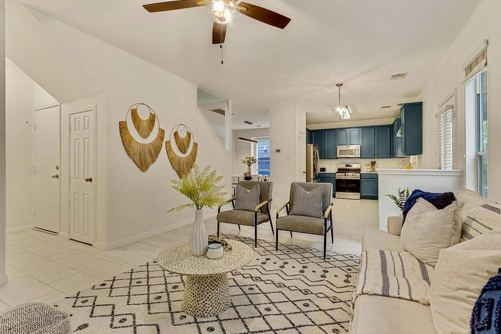 Located in one of Austin's most desirable areas, this beautifully updated single-family home puts you close to the heart of Austin. Whether you're craving tacos in SoCo, exploring Zilker Park, or enjoying the vibrant music scene, you're just minutes away from the best of what the city has to offer"”all while coming home to the tranquility of a master-planned community. Upon arrival, the professionally installed hardscaping and garden beds create an inviting first impression. Step inside to discover an open-concept main level with porcelain flooring throughout. The two separate living areas, kitchen, and dedicated dining space provide plenty of room for gatherings. The completely renovated kitchen showcases quartzite countertops, distinctive blue-painted cabinets, modern hardware, and stylish light fixtures. Travel up the stairs, covered in new, luxury vinyl planking, and you will find a generous loft area along with a conveniently located laundry room. One guest room even features a private balcony. Retreat to the primary bedroom where tall ceilings create a bright, open atmosphere. The two, large primary closets provide ample storage for even the most extensive wardrobes. Fresh paint gives the new owner a clean palette, but improvements beyond the immediately visible also abound! This home features a recently installed (2023), high-quality roof with attic tenting and additional insulation and venting. These improvements plus a recent AC unit (2021) and windows with UV-blocking 3M film means you will be able to keep cool in the hot Austin summers. The xeriscaped backyard offers low-maintenance beauty and backs up to a greenspace whose thick trees offer ample privacy. The shady backyard features multiple hang-out areas, a custom water feature, and a covered patio making it perfect for year-round entertaining. The community itself features scenic walking trails, a playground, and a peaceful pond.
