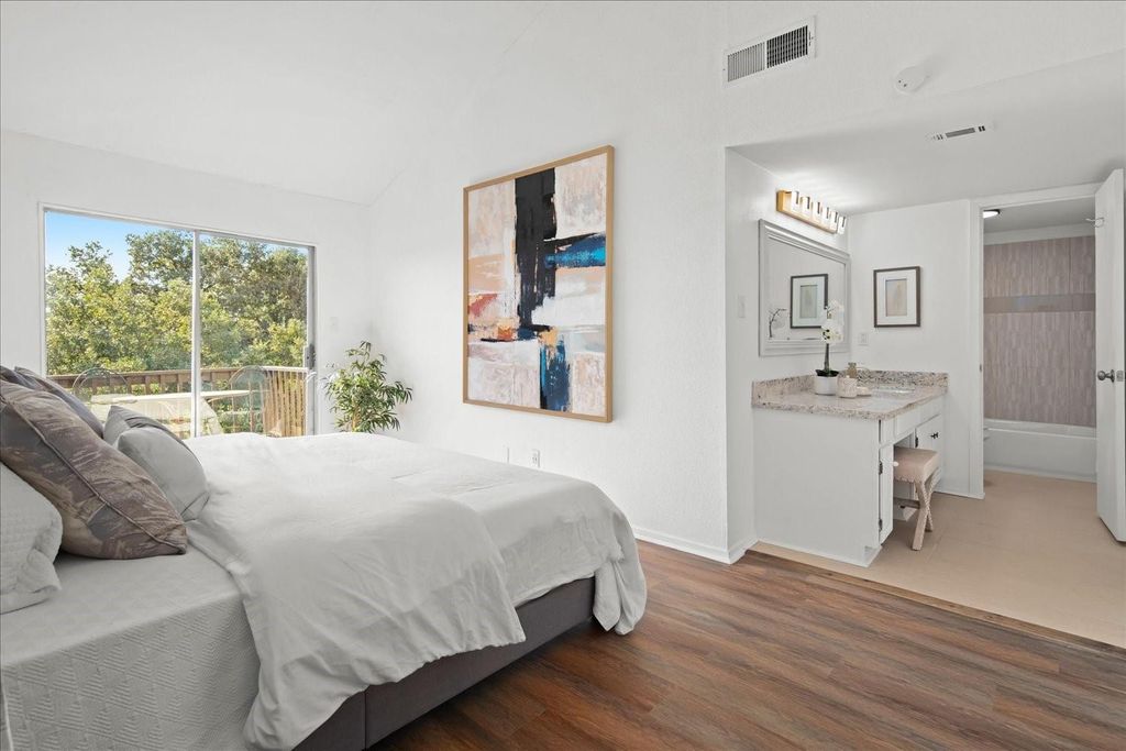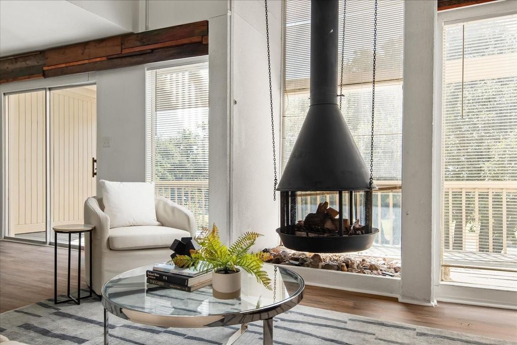 Charming townhouse on the local golf course and short distance to the lake is perfect for an owner occupant, STR investment, or vacation getaway. Updates in last 2 years include kitchen, bathrooms, HVAC and flooring. Relaxing outdoor patios on every level with their own unique atmosphere, including lake views from the top floor. Every floor has a generously sized bedroom with a walk-in closet and an updated full bathroom. Ample indoor and outdoor storage space. Recently renovated kitchen has newly installed range and dishwasher, oversized stainless steel sink with dual function faucet, grey quartz countertops and white lantern shaped backsplash. Living space has soaring ceilings with a striking suspended wood-burning fireplace, bringing together elements of mid-century modern and vintage design. Each floor with its own potential, use every room as a bedroom or use the spacious lower room as a movie theater, game room, office, gym, etc. Community amenities include pool, restaurant, library, gym, tennis and pickleball courts, clubhouse, and access to marina for an additional fee. Lago Vista is a short drive for more restaurants, grocery stores and things to do. Short Term Rental / STR allowed! Lots of amenities nearby, make your appointment today!