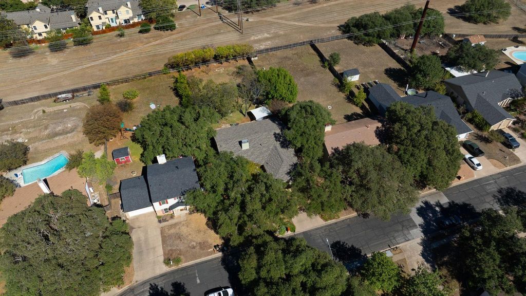 Located under the oaks in Gracywoods, you don't want to miss this move-in-ready home. It's a nature lover's dream. The large oak and Japanese maple trees in the front yard are stunning. Set on .33 acres and backing to the North Star Greenbelt Trail (accessible through the back gate), there is plenty of room to exercise your green thumb. There is even a small greenhouse already on site. Cool off from the Texas heat in a fabulous cowboy pool. It's included with the property, and Cowboy Pool offers "pool school" to the new owners. Inside, the vaulted ceiling and huge windows make the living area bright and inviting. The fireplace near the wet bar offers a cozy setting for enjoying conversation and drinks with friends and family. The dining room is spacious and open both to the kitchen and the pass-through from the bar area. The kitchen features Silestone quartz countertops, solid wood cabinets, a nice-sized pantry, and space for a smaller table for more intimate meals. The large laundry room is located off the kitchen and has shelves for storage and a door to the backyard. Another door to the back patio is located off the living area. Down the hall, there is a full bathroom with a fully tiled walk-in shower. There are also 3 spacious bedrooms off the hallway. The large primary suite features a walk-in closet and a separate linen closet. The ensuite primary bathroom features a bathtub and shower combo-also beautifully tiled. The 2-car garage has a large work table for handy people or hobbyists and plenty of room for storage. Also, the home has NO CARPET. The HVAC system is ~12 years old and is regularly serviced. Home improvement highlights: 2022-Plumbing upgrade to PEX Pipe and water heater; 2024-roof replacement, 2025-POPCORN CEILING REMOVAL, interior paint including kitchen cabinets, cosmetic upgrade to living room beam. Gracywoods subdivision is minutes from the Domain, Q2 Stadium, and a variety of schools. Zoned to Pflugerville ISD.