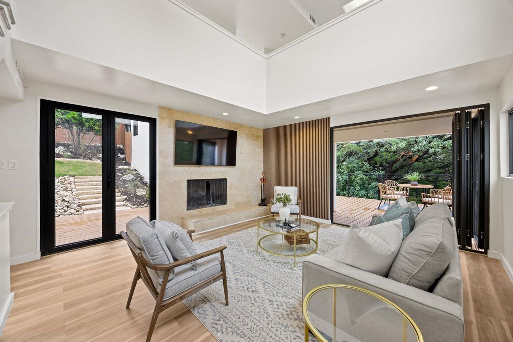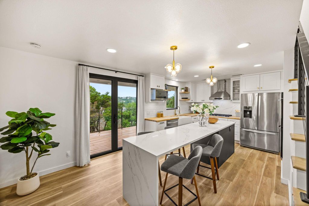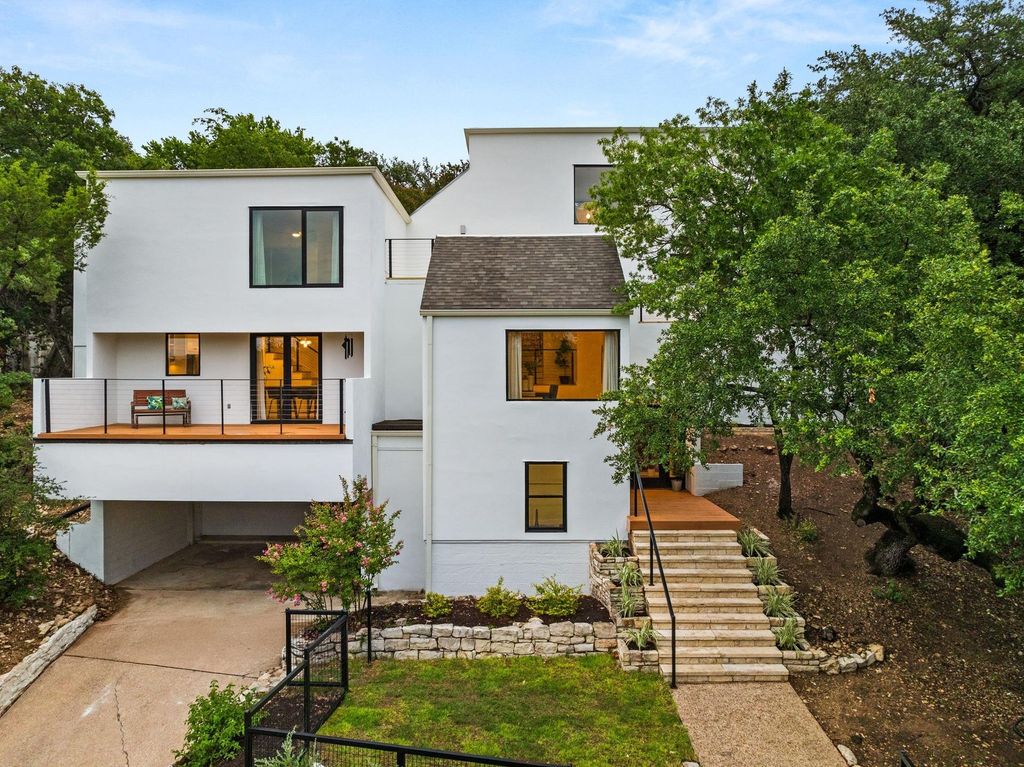 Stunning and fully renovated home in Highland Hills, a highly sought-after community in the Northwest Hills region of Austin. The owners have spared no expense in presenting you with a modern updated home, inside and out. Every detail has been considered, from new stucco and pool upgrades outside to every finish update you find in magazines inside, including opening up and removing some walls to give the home a more seamless flow. Multiple balconies outside offer even more space to entertain in this already larger than 3,000 sq. ft. home. You'll find versatile spaces in this multi-level home to fit your specific needs. The ground level offers a guest suite or private office, quietly tucked away from the rest of the home. Head upstairs to find your beautifully renovated kitchen as the central headquarters and great gathering space. A long peninsula offers dining space for six and great work-prep area for cooking on your brand new stove. An additional formal dining room is adjacent and looks out onto the yard and pool - use this room as designed for dining, or stage it for lounging or a playroom. The kitchen overlooks the front yard and hilly views beyond and has a large balcony for dining al fresco or drinking your morning coffee. Two separate staircases from the kitchen lead to different wings of the house. One takes you up to three secondary bedrooms and a full bathroom, while the other leads to your tranquil living room with a fireplace and view of the pool in the backyard below. A library or office loft for study is situated in a corner above the living room at the highest peak of the home. The secluded primary bedroom overlooks the backyard. Additional upgrades include new decking, high-end roofing, thermo controlled double pane windows, and upgraded bathrooms. With highly rated local schools (including Doss Elementary) and a friendly neighborhood to explore, this home is an absolute must-see! If you've been waiting for perfection, this is it.