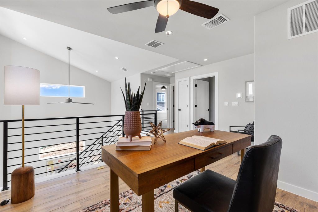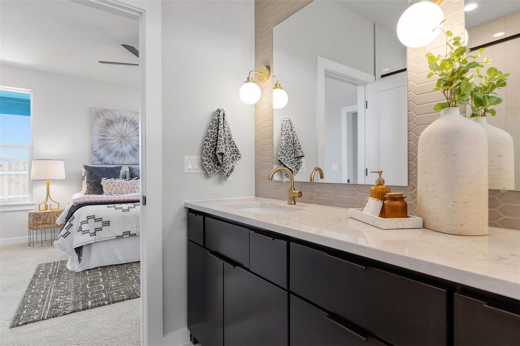 Price reduced to $399,000!!! This price is valid only for a closing & funding on or before December 31st, 2025! Federal tax credits are going away at the end of the year! 2011 sqft, 4 bed plus loft, 2.5 bath; Crisp, clean, contemporary new construction boasts 26-foot ceilings embedded with 15 feet of windows to wash the front living areas in natural light. All cradled brand new Hardi Panel Seagrass siding not used in Austin until now!! Owners suite is on the main level, this 4 bedroom plus loft is the perfect work from home configuration for a busy professional couple, or a family with kids. Built by the award-winning green home builder of the year, Thurman Homes has equipped the house with state-of-the-art geothermal heating and cooling AND solar. The whole house is then packaged with 100% foam insulation for cooler like performance! This home is ready for a Tesla Powerwall if optioned. Premium hardware selections adorn all soft close cabinet doors and drawers that are capped with 3CM countertops throughout, single lever faucets, lever doorknobs, covered patio, large back yard, and storage is abundant. Individual designer selections include tile to ceiling vanity splashes, sconce lighting, porcelain tile throughout with carpet in the bedrooms. The upgraded LG appliance package includes a chimney hood and refrigerator. There are over 600 acres of green space with walking trails, and community gardens will sprinkle your table with vegetables. It's only a 4-minute walk to the community gym/pool, and a 20-minute drive to downtown. Google and AT&T fiber are at the curb for 1GB service.