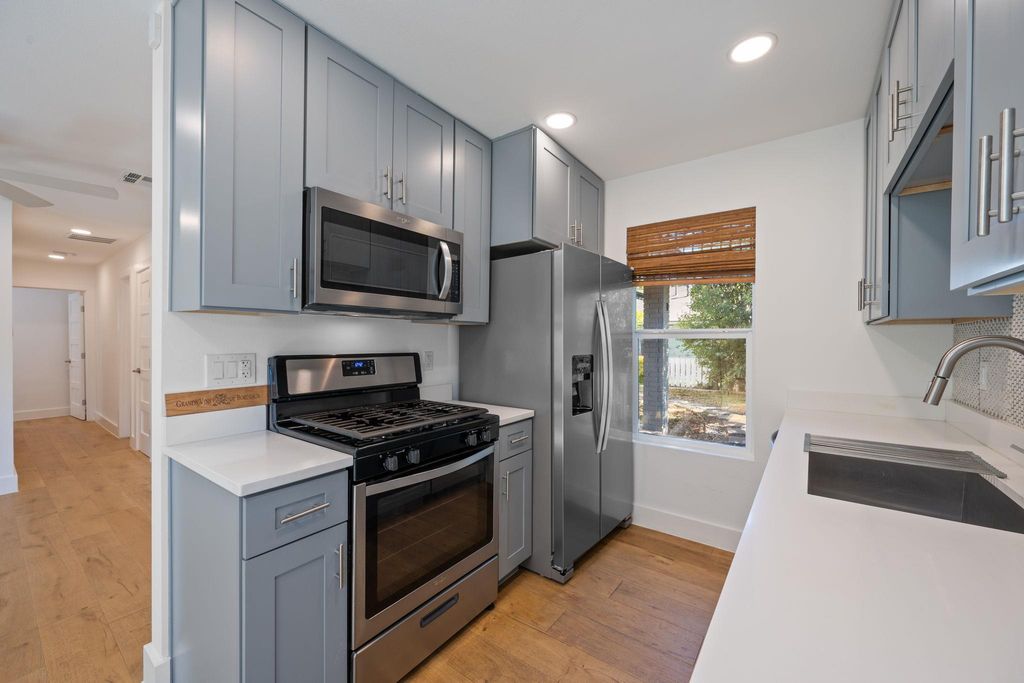 Beautifully refreshed and move-in ready, this charming two-bedroom, one-bath home captures the best of East Austin living with an ideal location just minutes from downtown, the airport, and the Tesla Campus. Thoughtfully reimagined with attention to craftsmanship, the home features all-new finishes including stylish cabinetry, sleek wood floors, upgraded trim work, modern plumbing and lighting fixtures, and updated landscaping. The bright kitchen offers ample workspace and opens effortlessly to the dining and living areas, creating an inviting flow for daily living or entertaining. Step through the back door to enjoy a spacious deck overlooking a large, fenced yard with plenty of room for gatherings or pets to roam. Both bedrooms are generously sized and filled with natural light, complemented by a beautifully redone bathroom with fresh, modern touches. Blending location, design, and comfort, this home offers a rare opportunity to experience East Austin at its best in a setting that feels completely new.
