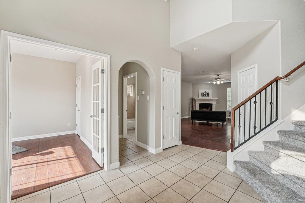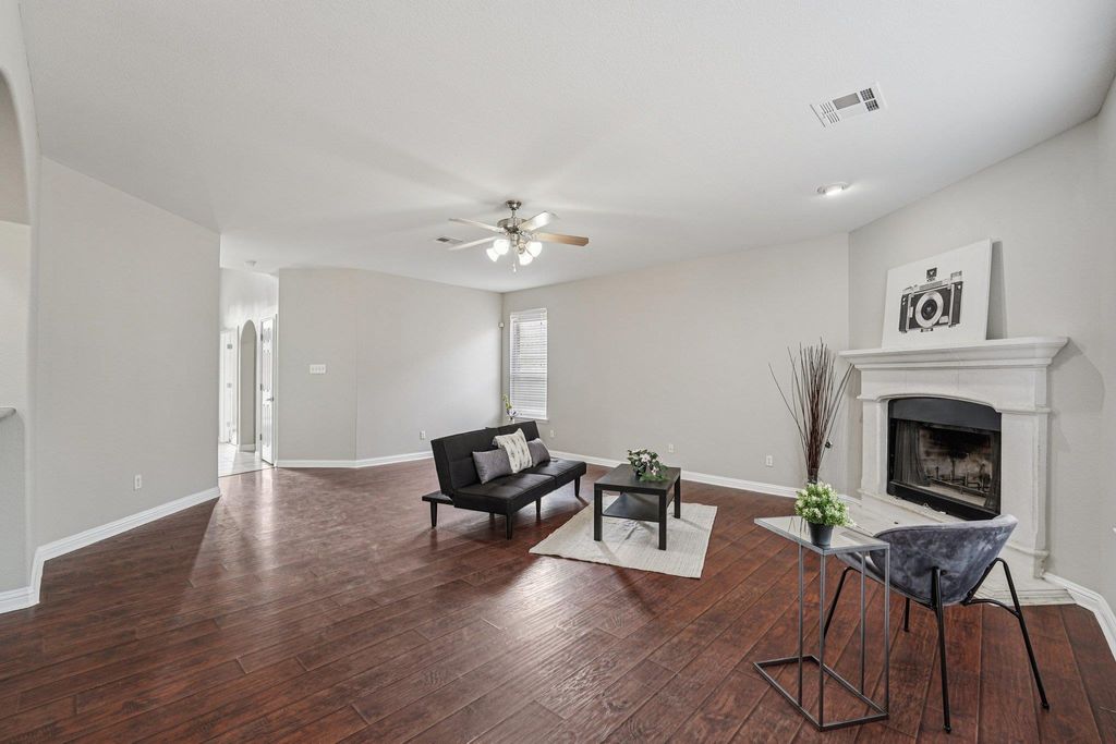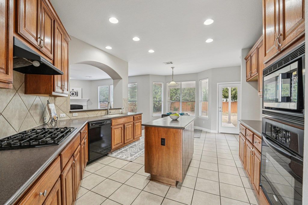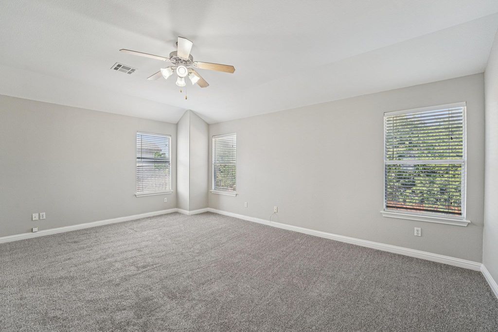 Welcome to this fantastic 5-bedroom, 4-bath home featuring a spacious game room, formal dining, and flexible floor plan! The kitchen opens to the main living area and includes a center island, gas cooktop, Corian countertops, built-in microwave and oven, and a cozy eat-in breakfast nook. The main living and dining rooms showcase hand-scraped wood laminate flooring, abundant natural light, and a gas fireplace. The primary suite offers a private bath with a separate tub and shower. A downstairs bedroom with glass double doors and a closet makes an ideal office or den. Upstairs, two bedrooms share a convenient Jack-and-Jill bath. Enjoy outdoor living with both a covered front porch and a large covered back patio overlooking the spacious yard"”perfect for entertaining! Fresh interior paint and new carpet (October 2025). Conveniently located near shopping, dining, and major employers.