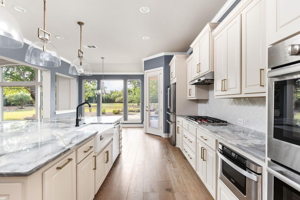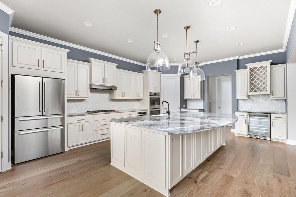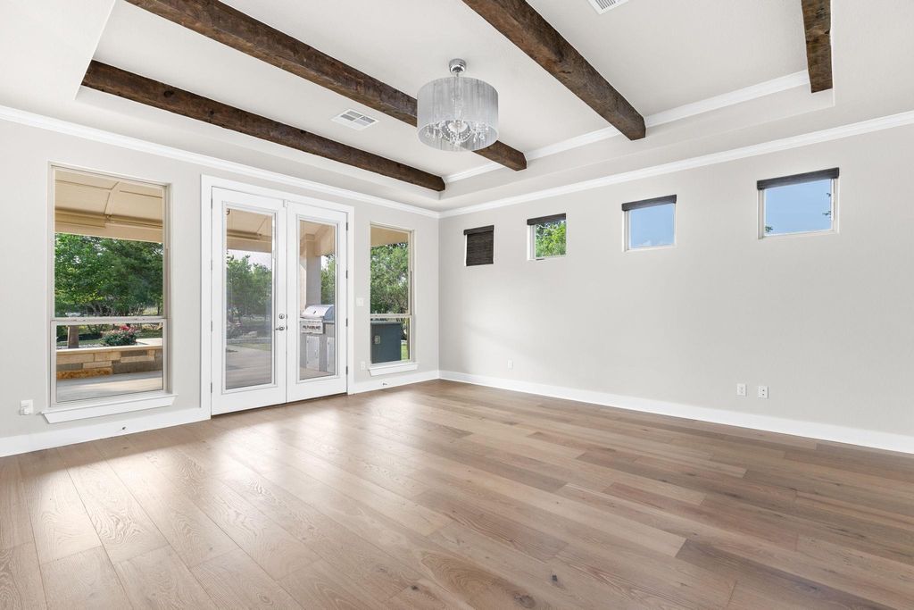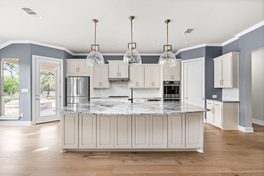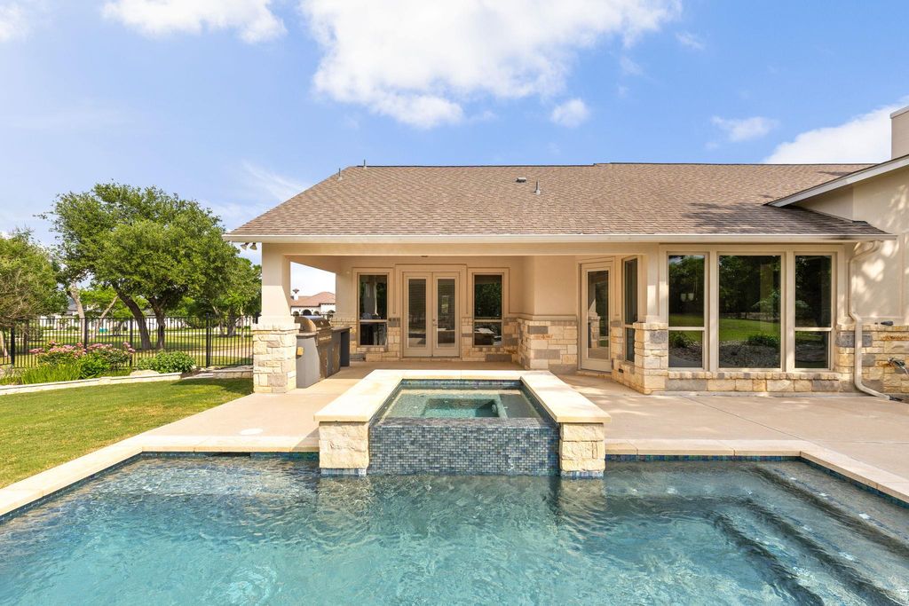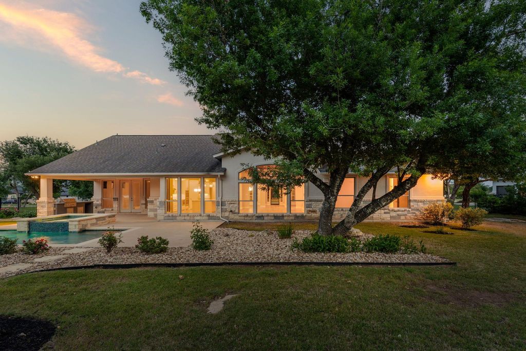 Welcome to 2120 High Lonesome, a stunning remodeled single-story home in the gated Grand Mesa at Crystal Falls community. Set on a beautifully landscaped 1-acre lot, this 4-bed, 4-bath home offers Hill Country luxury with high-end finishes, thoughtful design, and resort-style outdoor living. Inside, you'll find soaring beamed ceilings, rich hardwood floors, and an open-concept layout full of natural light. The gourmet kitchen features a Wolf gas cooktop, Bosch stainless appliances, new stone counters, new tile backsplash, updated paint, large island, built-in wine fridge, and motorized window shades. Restoration Hardware light fixtures have been added over the kitchen island and in the large Family room. The spacious living area includes a stone fireplace and views of the private backyard. The primary suite is a serene retreat with a spa-like bath, dual vanities, a soaking tub, and a large walk-in closet. Three additional bedrooms are thoughtfully separated for privacy. A dedicated office and formal dining room with new seagrass wallpaper offers flexible living spaces. Step outside to your backyard oasis with a covered patio, outdoor kitchen, and a Cody pool and spa with PebbleTec finish. The yard, winner of the 2022 Grand Mesa Garden Tour "Best in Show," is fully fenced with iron fencing for greenbelt views. Additional features include plantation shutters, a 3-car garage, and a circular driveway. Community amenities include pools, tennis courts, a fishing pond, and miles of trails. Zoned to highly rated Leander ISD schools. This home offers the perfect blend of luxury, privacy, and convenience"”don't miss your chance to own one of Grand Mesa's finest properties!