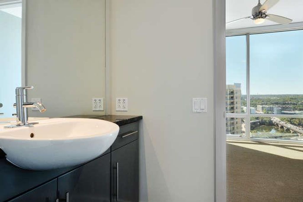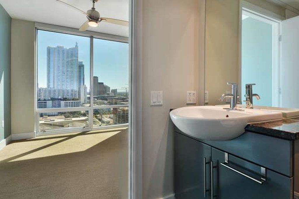 Welcome to Spring Condominiums located in the Market District of Downtown Austin. This is a beautiful southeast corner two bedroom, two bathroom unit with floor to ceiling windows and incredible panoramic views of both the city and Lady Bird Lake. Features includes a balcony, solid granite counters with artisan kitchen sink and Kohler faucet, custom hardwood floors, designer painted walls, and a walk-in shower in the main bathroom. Stainless refrigerator, gas cooking (paid by Landlord), washer & dryer, with black out shades in both bedrooms. Custom designer built-in main closet and the 2nd bedroom has a built in study area just perfect for working from home (Google Fiber now available and high speed internet ready) and features a million dollar downtown view. The unit includes two reserved parking spaces and optional storage. Amenities include a 24/7 fitness center, and a 24/7 front desk. Rooftop lap pool, 2 gas grills, private dining room, owners lounge, commercial kitchen and 2 guest suites. Premium location to Whole Foods and Trader Joe's, Lady Bird Lake and Butler Hike & Bike Trail. Call today for more details and a private showing.