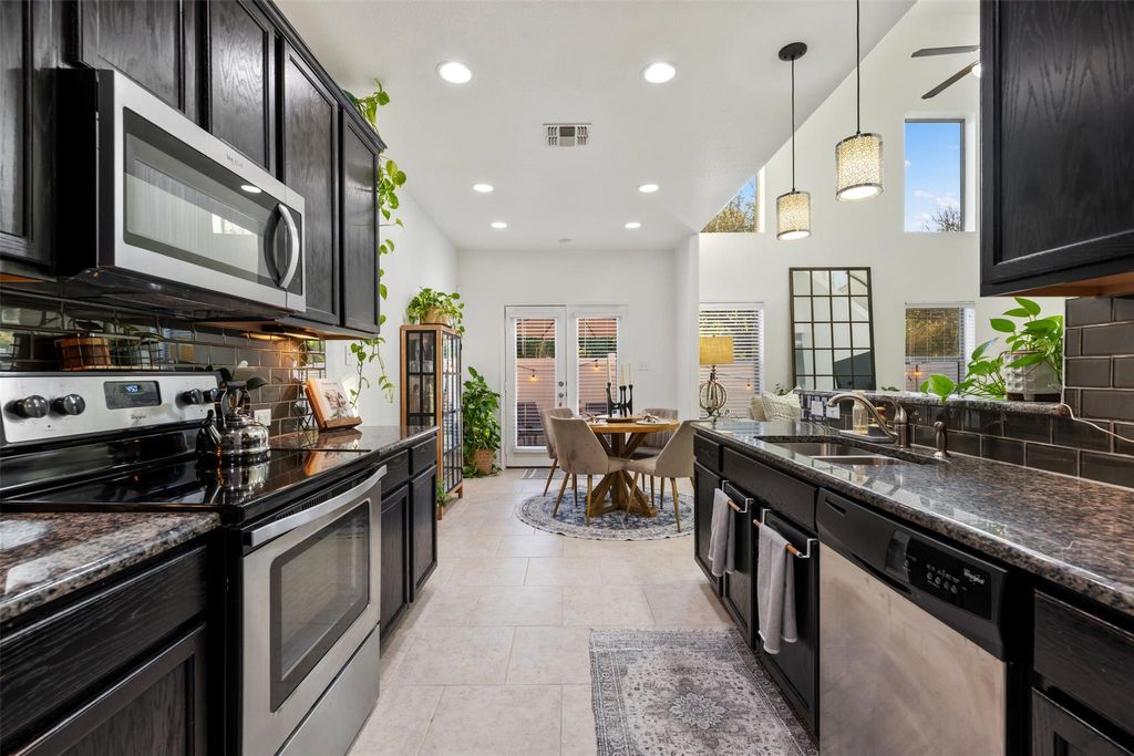 Come explore this beautiful home in the highly desirable Ravenscroft subdivision, perfectly situated as a premium end unit directly across from the community pool. At 1,922 sq. ft., this home offers one of the largest floor plan variations in the Ravenscroft Townhomes community. Step inside to a freshly painted interior, with durable new carpet, and updated baseboards"”creating a crisp, move-in-ready feel. A newly installed, professionally framed pet door provides seamless access to the backyard, ideal for pet lovers. The home also features a new condenser outside for the air conditioner, disposal and microwave just bought this year, washer and dryer connections on both the first and second floors, adding exceptional convenience and flexibility to your daily routine. A rare fenced backyard"”not commonly found among neighboring units"”offers added privacy and expanded outdoor usability. The versatile floor plan includes a primary bedroom on the main level, two generous bedrooms upstairs, 2.5 bathrooms, and spacious living rooms both upstairs and downstairs. The home showcases a mix of tile and carpet flooring. The kitchen is equipped with granite countertops and stainless steel appliances, while the primary bath features a walk-in shower. Unlike other units, the proximity to the pool offers unmatched convenience for enjoying sunny Austin days. You'll also enjoy being just seconds from Menchaca Road, offering a unique blend of local community charm and convenient access to the best of South Austin. Nearby favorites include Mary Moore Searight Metropolitan Park, Bauerle Ranch, South Austin Beer Garden, Armadillo Den, The Hive, Moontower Saloon, HEB, and more.