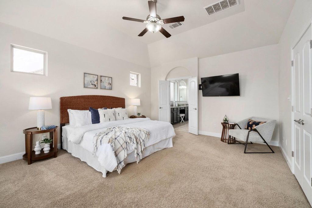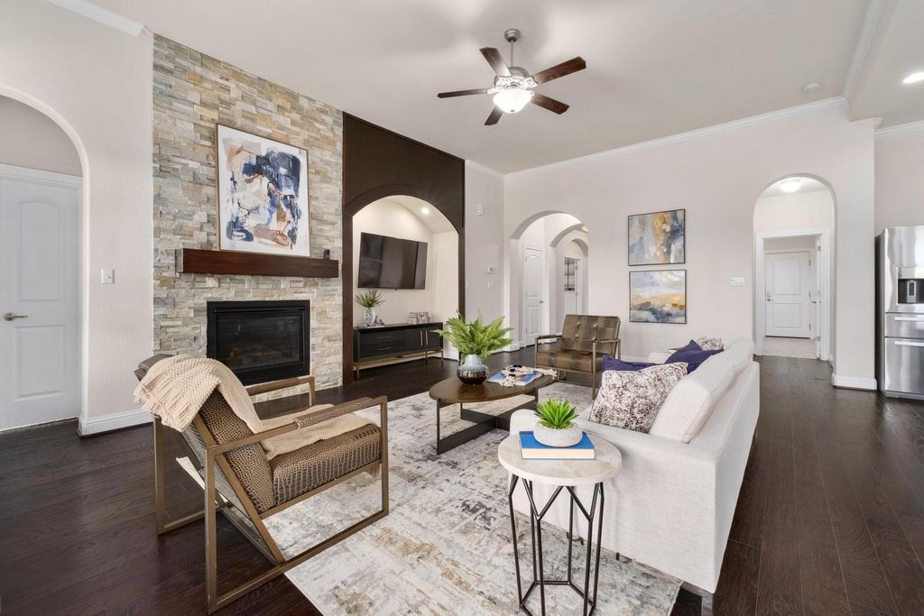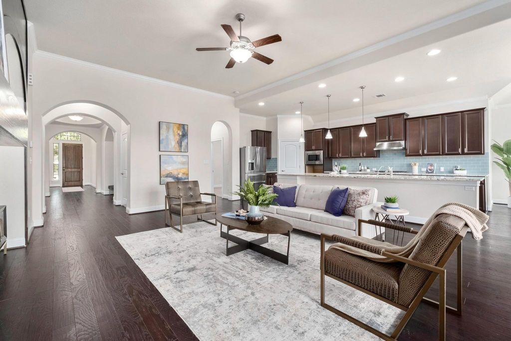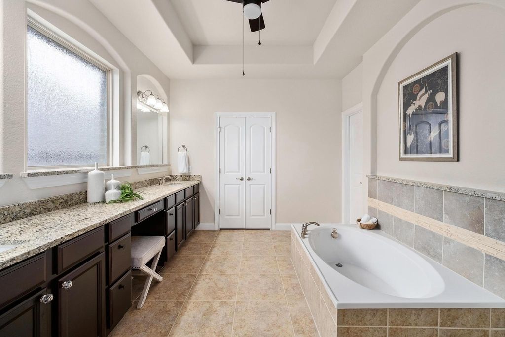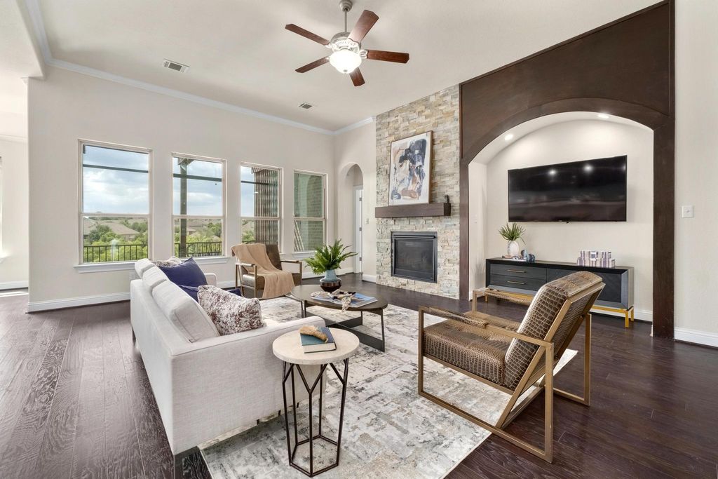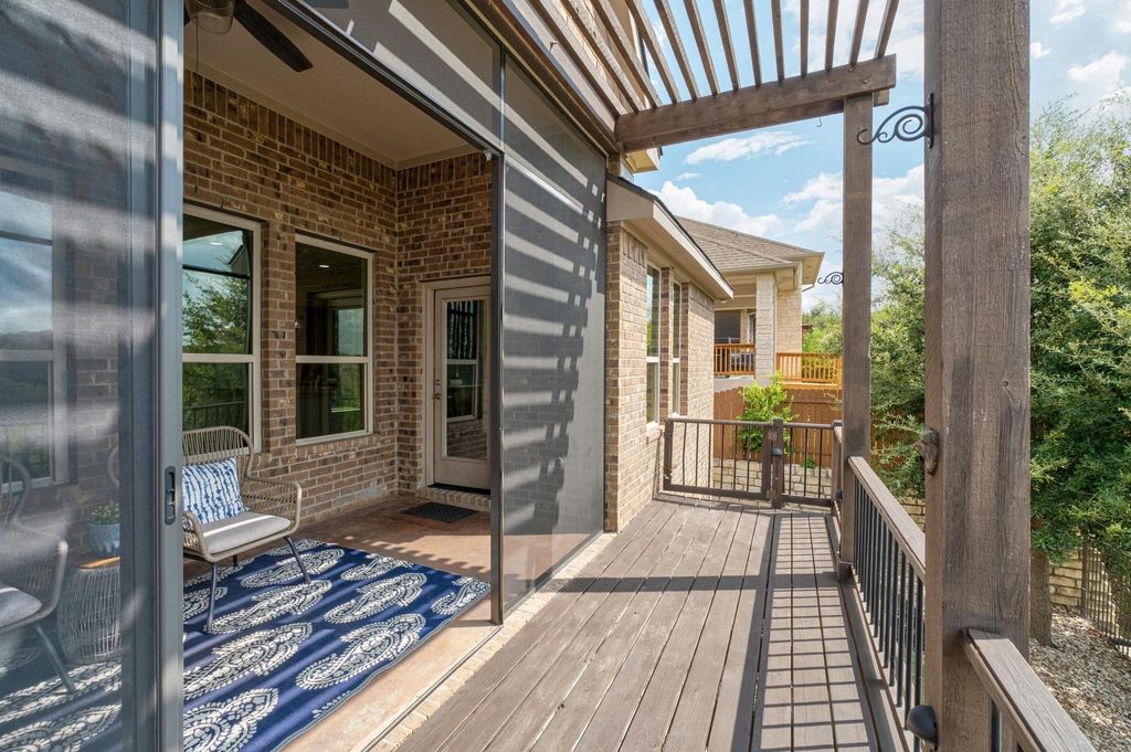 Great opportunity to own a one- story gem in the acclaimed Sweetwater community. This 4 -bedroom, 3.5- bathroom home offers a spacious entry foyer, dedicated office, large utility room with folding counter, tall ceilings and a wall of windows framing the Hill Country backdrop. Layout is ideal for in-law/multi-generation scenario with a large secondary bedroom and ensuite bathroom and easy access to the three- car garage. Upgrades throughout include wide-plank flooring, granite surfaces in the kitchen, bathrooms and laundry as well as stainless appliances and an oversized kitchen island ideal for gatherings. Enjoy outdoor living on the screened in back porch overlooking the greenbelt. New roof is less than one month old and interior has just been completely repainted. Lake Travis ISD. Access to community pools, clubhouse and trails. Don't miss this one!