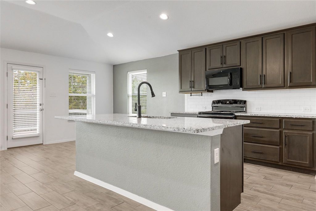 Beautiful single-family home offering 4 Bedrooms and 2 Full Bathrooms with breathtaking Hill Country Views. The open floor plan provides great flow, with a spacious living room featuring large windows and direct access to the deck-perfect for entertaining or enjoying sunsets and ideal spot to watch the July 4th fireworks. The private primary suite includes space for a sitting area, bay windows overlooking the Hill Country, a large walk-in closet, and full bath with stone countertops, double vanity, garden tub, and separate walk-in shower. Three additional bedrooms offer generous closet space. Kitchen features granite countertops, ample cabinetry, and all appliances convey. Two-car garage plus oversize driveway for extra parking. A rare combination of comfort, views, and functionality, centrally located, close to Lake Travis and all POA Amenities - this home is a must see.