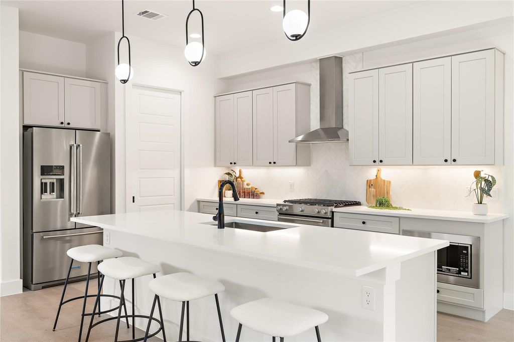 APPLIANCES | Dishwasher, Disposal, Exhaust Fan, Gas Range, Microwave, Refrigerator, Stainless Steel Appliance(s), Tankless Water Heater |