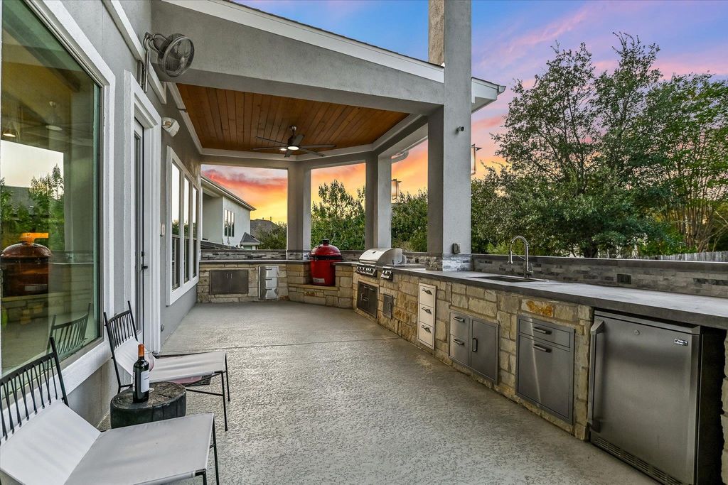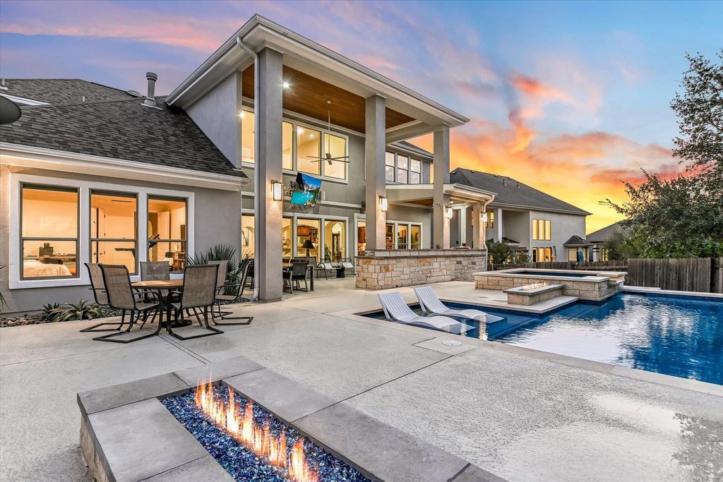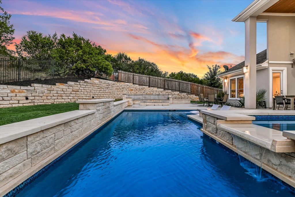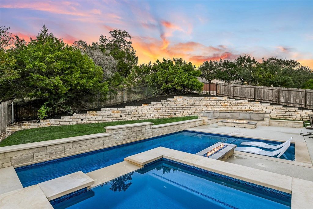 Updated home showcasing a breathtaking backyard paradise with outdoor living spaces including pool, spa, firepit and kitchen. Situated perfectly on a large private greenbelt lot surrounded by lush foliage. Truly the pinnacle of luxury living in the coveted Emerald Ridge section of Steiner Ranch. Featuring over 4000 SF of living space, 5 spacious bedrooms and 4.5 baths, including a resort style luxurious primary suite, true media room, game room, private guest suite, and an oversized 3 car garage. Quiet low-traffic street just a block from the Bella Mar Community Center, offering resort-style amenities. Steiner Ranch is an incredible master planned community with world class amenities and home to the prestigious University of Texas private Golf & Country Club. Steiner residents have access to Lake Austin with Lake Travis just across the street and 20 miles of miles of stunning hike & bike trails, 3 community centers with tennis, pickleball, volleyball and basketball courts, playgrounds and sports fields, and is zoned for outstanding schools. All this plus nearby medical, shopping and dining. This is a rare opportunity where elegance meets functionality in one of Austin's most desirable neighborhoods. Truly a rare gem.