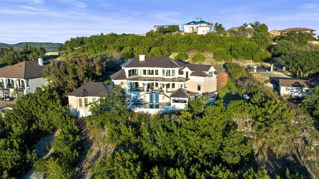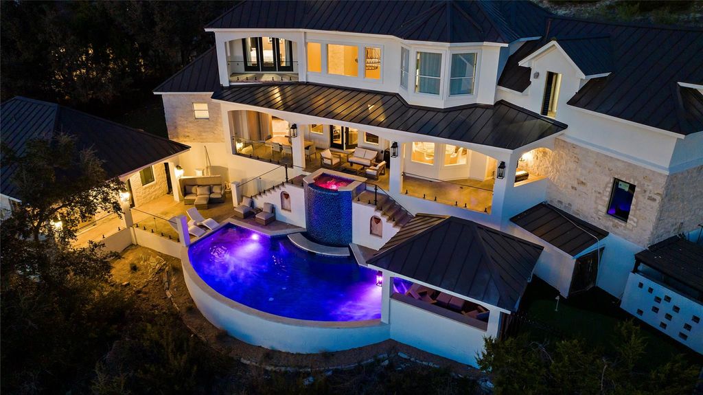 Perched on a prestigious hilltop, this sprawling 4,800+ sq. ft. Modern Mediterranean Estate seamlessly blends timeless elegance with contemporary design. Just 25 minutes from vibrant downtown Austin, the home offers resort-style amenities and a peaceful retreat, while keeping you close to the city's premier dining, entertainment, and cultural experiences. Enjoy the tranquil waters of Lake Travis just a short walk away, or take advantage of the estate's prime location for both relaxation and convenience. With expansive indoor-outdoor living spaces, breathtaking panoramic views, and refined architectural details, this estate is designed for those who value luxury, privacy, and connection to nature.