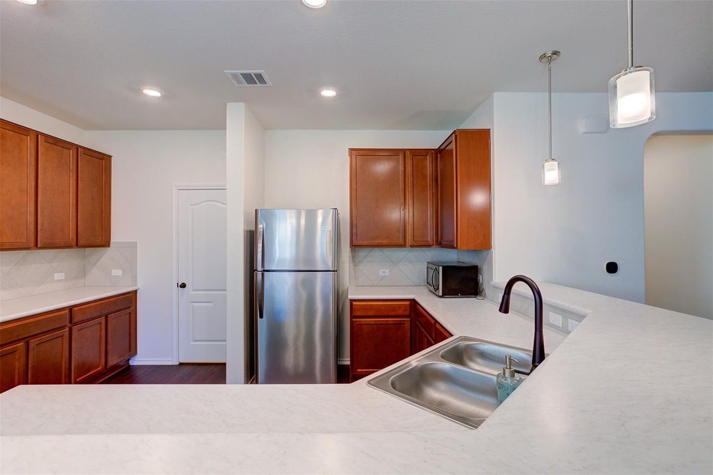 Truly a rare find in the incredible Northtown community in Pflugerville! Close enough to Austin & Central Texas's numerous major employers (think Dell, IBM, Amazon, Accenture, Emerson, Tesla, Apple & MORE!) yet far enough away from ALL the hustle & bustle. 114116 Flawless Flora is within walking distance to a number of parks: Wildflower, Meadow Pointe, Northtown+++) and has the added benefit of being super close to Barron Elementary. Stunning stucco & stone single story 1647 square foot 3/2 home offers separation between primary and secondary bedrooms, a lovely wraparound kitchen island with sleek pendant lighting that makes connecting with the happenings in the living room a natural flow. This beautiful 2020 built KB home boasts fabulous separation between primary & secondary bedrooms, a formal dining space with a door to the backyard that could easily double as a home office/flex space. Kitchen offers a truly enormous pantry, plus a vast array of cabinets - perfect for storing all you holiday serviceware:) Primary suite at the back of the home offers and welcoming and generously oversized floor plan, with even more storage room in the massive walk-in closet. Spa-like primary bath completes the day with a beckoning soaking tub, separate shower and dual vanities. Truly a must see!!!