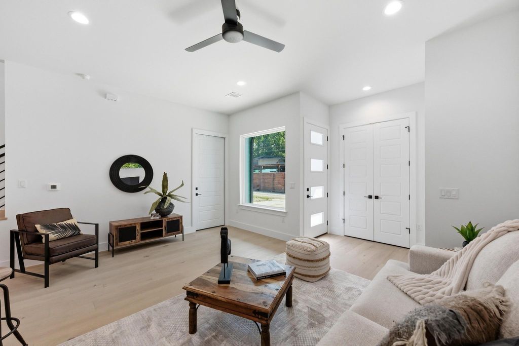 Located in the heart of East Austin, this newly constructed condominium masterfully blends modern design with everyday functionality. The open floorplan highlights a harmonious mix of wood, tile, and stone flooring, complemented by recessed lighting and refined interior finishes that exude warmth and sophistication. The spacious eat-in kitchen flows effortlessly into the family room, featuring a large pantry, generous storage, and sleek contemporary fixtures"”perfect for everything from relaxed weeknight dinners to lively weekend entertaining. Upstairs, the primary suite serves as a private retreat, complete with a ceiling fan, dual vanity, full bath, and an expansive walk-in closet. Every element has been thoughtfully curated to provide comfort, style, and convenience. Step outside to your own private yard"”a rare gem in East Austin"”ideal for morning coffee, intimate gatherings, or quiet evenings under the stars. Perfectly positioned for an urban lifestyle, this home is within walking distance of Whole Foods and Target, making car-free commuting a breeze. And with downtown Austin, local eateries, and vibrant cultural hotspots just minutes away, you'll enjoy the ideal blend of city energy and personal tranquility.