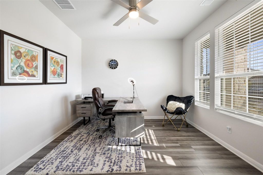 Step into modern elegance and everyday comfort at 19328 Forman Dr in vibrant Pflugerville, Texas. Built in 2022 by Ashton Woods and thoughtfully upgraded beyond builder grade, this 4-bedroom, 3.5-bathroom light-filled home offers a functional layout, modern finishes, and a true move-in-ready experience. Enjoy sunrise views from the welcoming front porch and peaceful sunsets from the backyard, creating a daily rhythm of light and comfort. The open-concept main level seamlessly connects the kitchen, breakfast area, and living room"”ideal for everyday living and entertaining. Large windows flood the space with natural light, while motorized designer blinds provide effortless privacy and light control. The kitchen features stainless steel appliances, a modern oversized sink with upgraded faucet, a butler's pantry, and a dedicated drinking-water filtration system"”both stylish and practical for daily use. The main-level primary suite offers a relaxing retreat with space for a king-size bed and seating area, a generous walk-in closet, and a well-appointed bath with dual vanities, soaking tub, and glass-enclosed shower. A private study with wood flooring provides the perfect home office or flex space. Upstairs, you'll find three additional bedrooms, including one with an ensuite bath, a full bath with dual sinks, and a spacious game room ideal for a media room, playroom, or second living area. The upgraded laundry room includes a sink, cabinetry, and Samsung washer and dryer. Outdoor living shines with an extended covered patio featuring a ceiling fan, roll-down shade, and elegant railings"”perfect for relaxing or entertaining year-round. Additional highlights include premium Hunter ceiling fans in every room, designer lighting, whole-home water softener, security system with cameras, full-perimeter gutters, dusk-to-dawn driveway lighting, and a spacious two-car garage. Lovingly maintained and thoughtfully improved, this home offers comfort, functionality, and style.