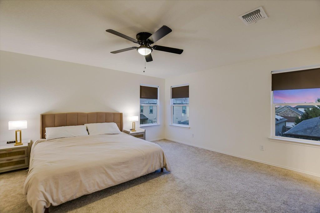 Nestled in a highly sought-after community just 16 miles from downtown Austin, this spacious 2017 built home offers comfort, convenience, and room to grow. The neighborhood features a low quarterly HOA, resort-style amenities"”including a large pool, basketball court, sand volleyball, and a community elementary school within walking distance. Plus, the brand-new H-E-B is only 1.5 miles away, making errands quick and easy! Inside, you'll find an inviting open floor plan filled with natural light. The gourmet kitchen is a chef's dream with granite countertops, stainless steel appliances, 42" upgraded cabinets, a stylish backsplash, and a walk-in pantry. The oversized primary suite is a KB signature design, boasting generous space, double sinks, and abundant storage. Perfect for guests or multigenerational living, the upgraded floor plan includes a downstairs bedroom with a full bath. Upstairs, you'll find three additional bedrooms, two full baths, a large loft, and a convenient laundry room. Clean interior paint and carpets make the home move-in ready. Step outside to your private, fenced-in backyard"”ideal for relaxing afternoons, playtime, or entertaining. Refrigerator conveys, and sellers are ready to work with your timeline. This lovingly cared-for home is ready to welcome its next family"”schedule your showing today!