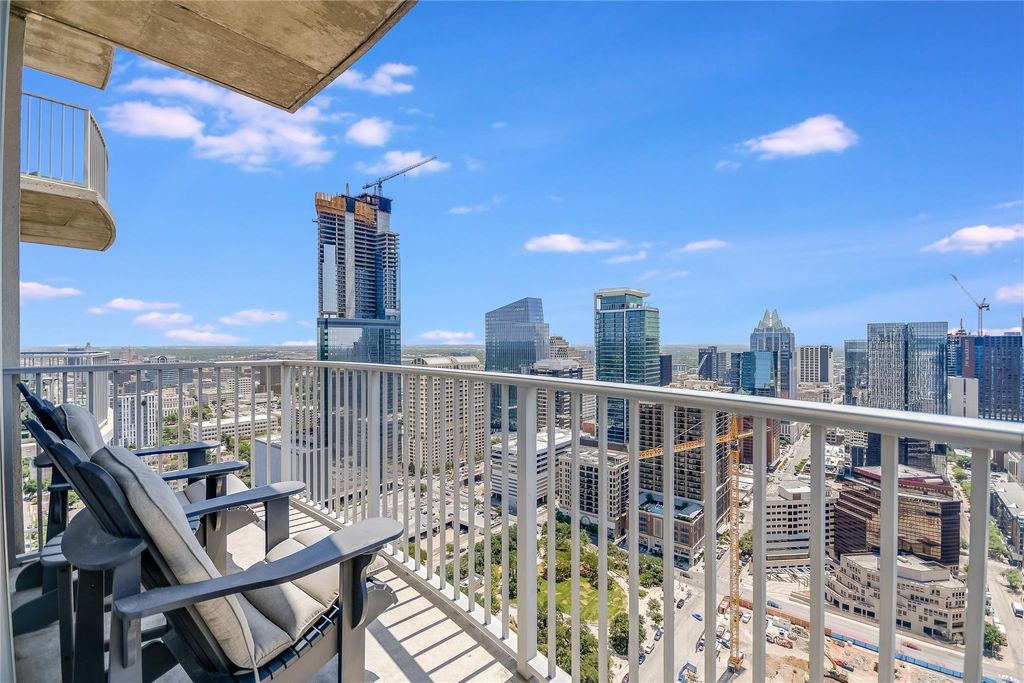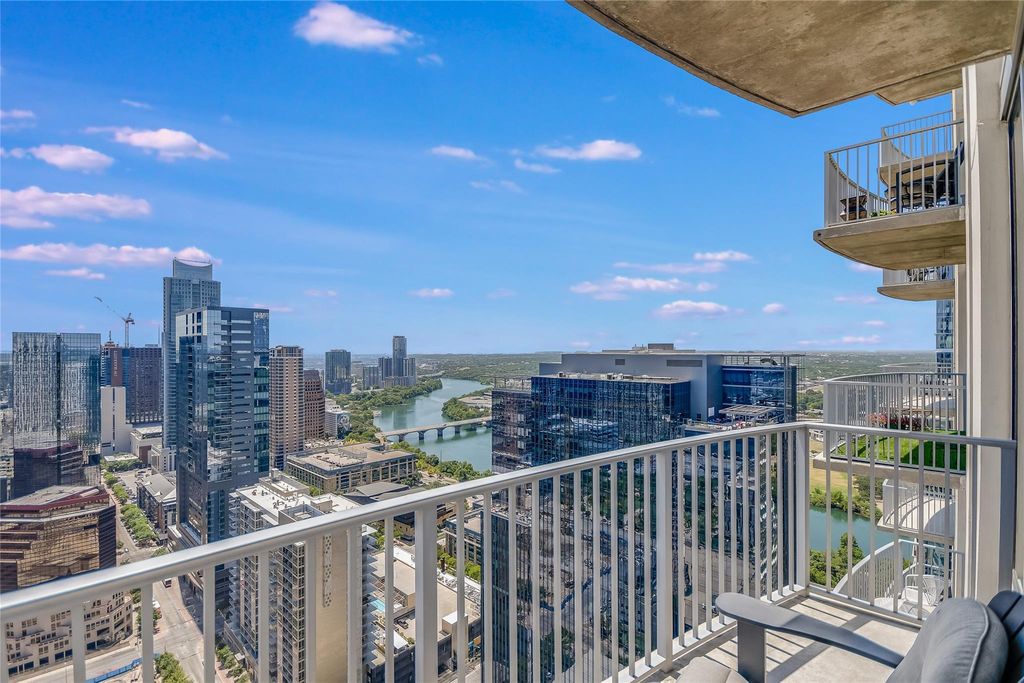 Welcome to Unit 3807 in the iconic 360 Condominiums, offering unparalleled 38th-floor views of Downtown Austin's skyline and Lady Bird Lake. This EAST FACING, UPPER floor 1-bedroom, 1-bathroom residence showcases floor-to-ceiling windows that flood the space with natural light and frame stunning panoramic vistas. Additionally, new owners will enjoy the ease of a P2 level assigned parking space included with this unit. Thoughtfully designed for both style and function, the open-concept kitchen flows seamlessly into the living area, creating a versatile urban retreat. Upgraded hickory wood floors, remote-controlled roller shades, modern lighting fixtures, and a bedroom ceiling fan elevate the interior. The spacious bedroom features two walk-in closets, and the unit includes a convenient stackable laundry closet. Enjoy resort-style amenities on the 9th and 10th floors, including a heated pool, outdoor grilling stations, fitness center, clubhouse, and business center. A pet relief area is located on the 4th floor. This is downtown living at its finest"”whether you're seeking a full-time residence, lock-and-leave lifestyle, or a sophisticated city escape.
