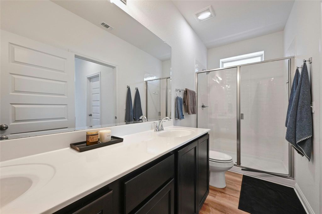 Located in the heart of Easton Park, this unique, upside-down floor plan features the living and kitchen areas on the upper level, creating a loft-like vibe with added privacy. The spacious open design layout gets tons of natural light with a wall of windows and a sliding glass door opening out to a private balcony patio. The kitchen is equipped with a large quartz island with breakfast bar seating, a huge walk-in pantry, recessed lighting with dimmer switches and a dual oven. Retreat downstairs to the generous primary bedroom with walk-in closet and ensuite bath with dual vanities and a walk-in shower. The secondary bedroom upstairs, along with a full bath, offers the perfect set up for family, guests or home office. With 9-foot ceilings throughout, a dedicated laundry closet, a roomy downstairs storage closet, a 2-car garage, and a private, low-maintenance xeriscaped yard, this home is ideal for those seeking an urban lock-and-leave lifestyle. This is a free standing condo that lives exactly like a single-family house with NO SHARED WALLS! Enjoy a 5-minute stroll to the state-of-the-art amenities center, where you'll find a resort-style pool, fitness center, co-working space and dog park. On your way, stop by the food truck park with multiple venues, featuring Cenizo Coffee, opening daily at 6:00 AM. Just across the street, explore the new 21-acre Skyline Park, featuring splash pads, a zip line, swings, and multiple play areas. This home offers a perfect blend of comfort, convenience, and urban living, just 20 minutes from Downtown Austin. Owner/agent.