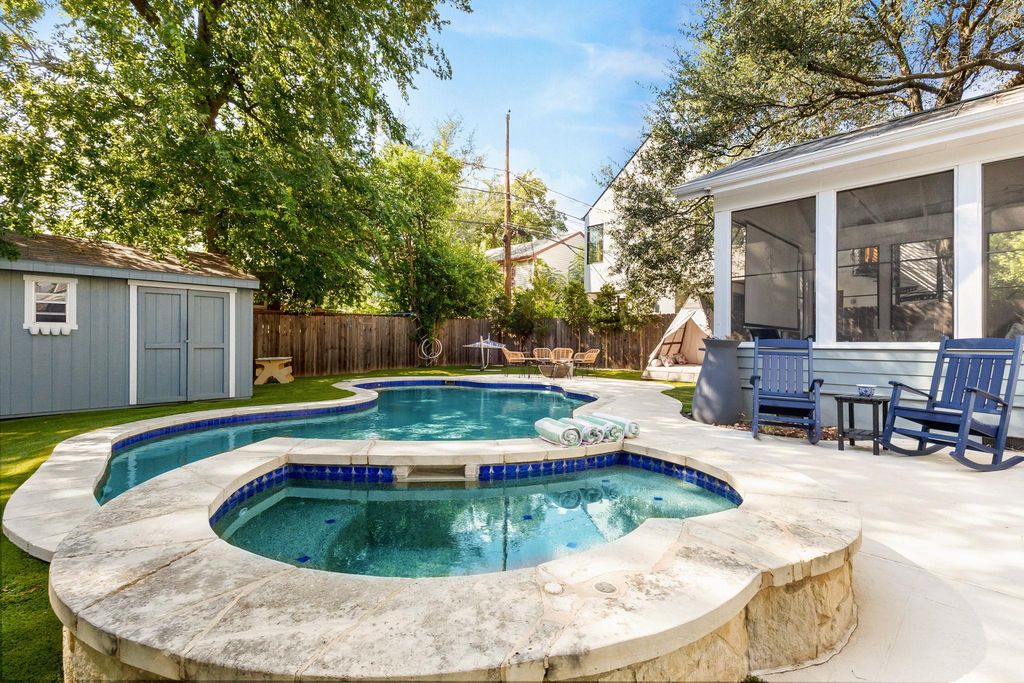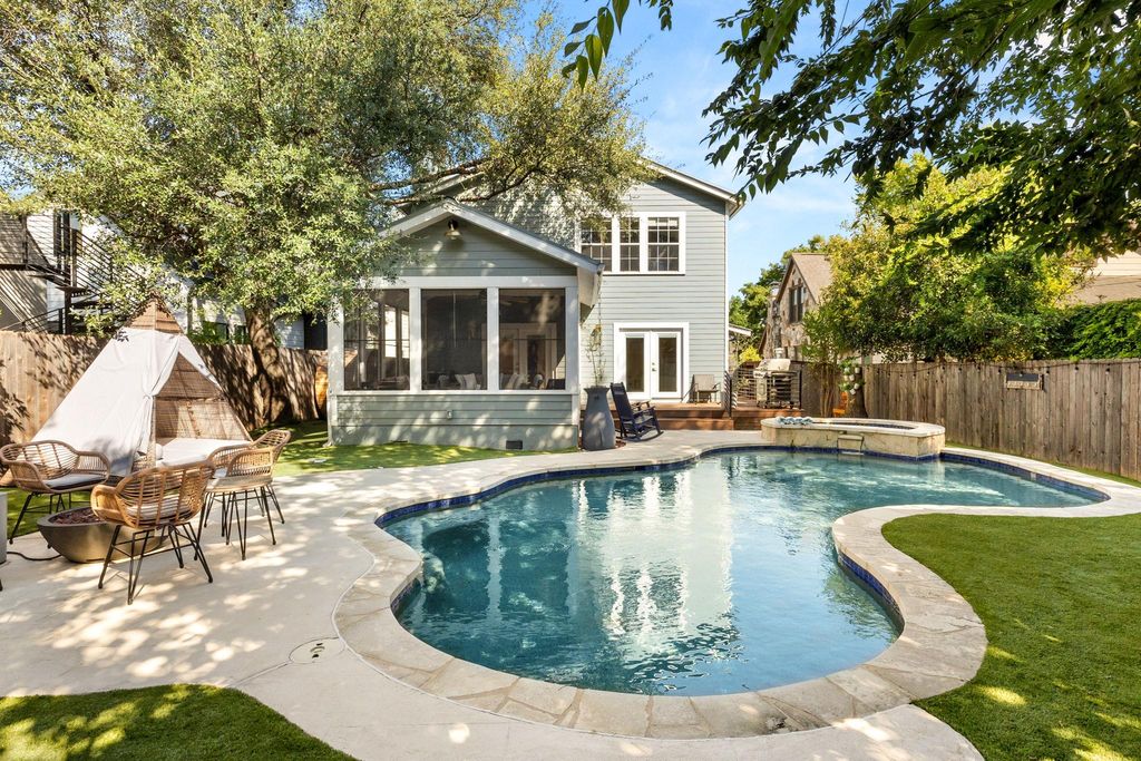 Welcome home to this thoughtfully upgraded sanctuary nestled directly across from Ramsey Park in the coveted Rosedale neighborhood. This spacious and stylish home offers the perfect blend of comfort, convenience, & luxury living with no detail overlooked. Enjoy morning coffee on the front porch daybed swing with park views, or head out for a short stroll to grab dinner or drinks. The chef's kitchen is ready for entertaining with marble countertops, stainless steel appliances, double ovens, a breakfast bar, and a cozy breakfast nook with built-in seating. The spacious living and dining spaces on the main floor are perfectly laid out and ideal for both lively gatherings & quiet evenings in. On the second level, the gorgeous primary suite features vaulted ceilings, bright light and backyard view, and a spacious ensuite bath with custom closet storage. With three additional upper level bedrooms, a main floor bedroom or office, a 3rd floor bedroom or bonus room, and a quiet library/den, the entire home offers superb flexibility for entertaining, family life & remote work. The screened-in back porch doubles is the perfect oasis to enjoy morning coffee or dinner with friends while the backyard features a stunning heated pool, hot tub, cedar sauna, putt putt area, rock climbing wall, and easy to maintain landscaping and turf grass. Every corner of this home has been curated with comfort and luxury in mind. Recent upgrades include new AC/furnace and water heater, new and refinished hardwood flooring, built-in shelves and storage, EV charger with power share, smart thermostats, fiber internet, an RO water system, new w/d, dishwasher and app-connected pool + spa controls with a brand-new heater. Furnishings are negotiable. Home is also available for lease - see MLS #4978751.