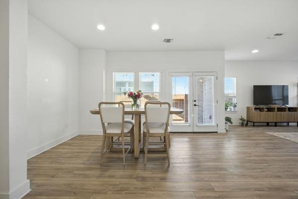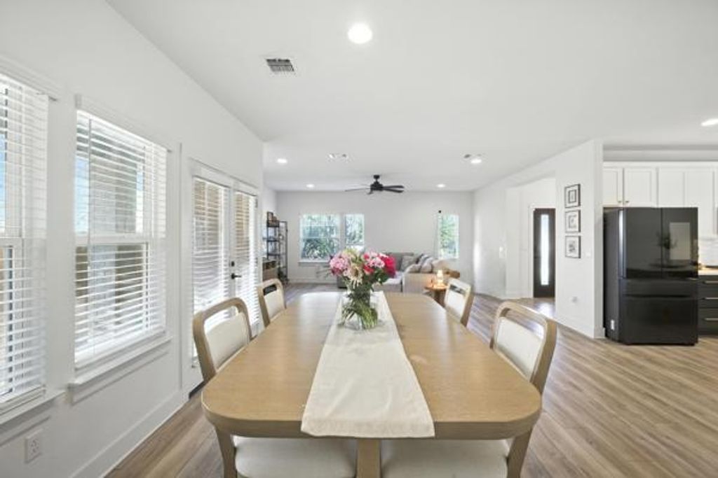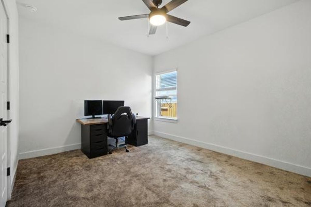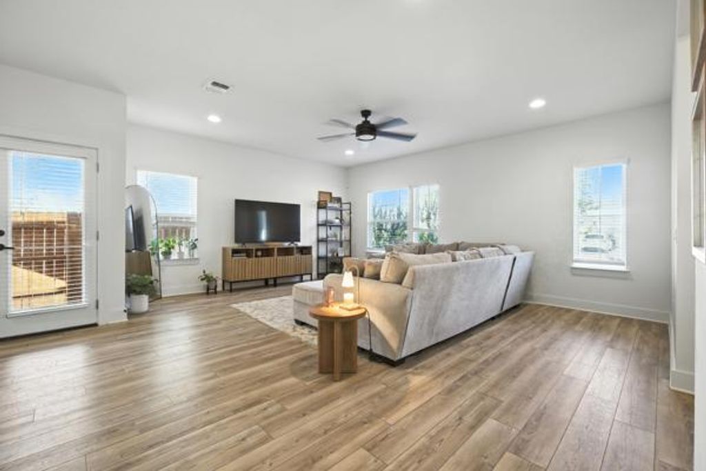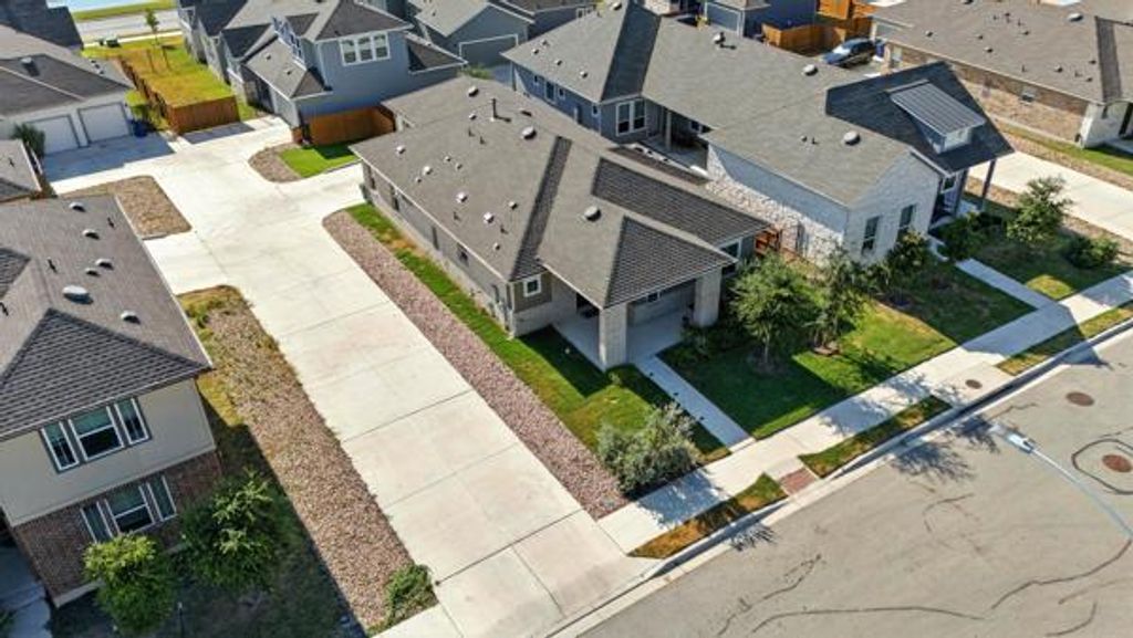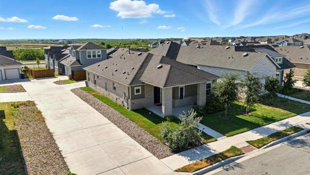 Tucked into the heart of Easton Park, this beautifully designed single story home offers the perfect balance of modern finishes and everyday comfort. With over 1,900 square feet, it features three spacious bedrooms, two and a half bathrooms, and a layout that flows effortlessly from room to room. The kitchen is a standout with its two tone cabinetry, quartz countertops, custom gold hardware, and a deep undermount sink. GE stainless steel appliances, under cabinet lighting, and thoughtful storage like pan drawers and pull-out shelves make it both functional and stylish. Luxury vinyl plank flooring runs throughout the main areas and into the primary suite, creating a clean, cohesive look, while the guest bedrooms offer plush carpeting for added comfort. You'll find smart upgrades throughout the home, including a Ring Doorbell, electronic lock, and dimmer switches for recessed lighting. Ceiling fans are installed in every room, and the sleek black fixtures and designer tile in the bathrooms add a sophisticated touch. The primary suite includes an upgraded walk-in shower and dual vanities, creating a true retreat. Step outside to your side patio, complete with a natural gas stub for grilling, and enjoy your fully landscaped yard with a programmable sprinkler system. The 2 car garage even includes an EV charging outlet for added convenience. Easton Park is a vibrant master-planned community offers over 13 miles of trails, a resort style pool, a state of the art fitness center, multiple dog parks, and green spaces to explore. The new Skyline Park features a splash pad, amphitheater, ziplines, and playgrounds designed for fun at every age. Plus, you're just 12 miles from downtown Austin, with easy access to the airport, Tesla, and McKinney Falls. Thoughtfully built and move-in ready, designed for how people actually live. If you're looking for the right mix of comfort, style, and community, this is it. Let's schedule a tour. You're going to love it here.