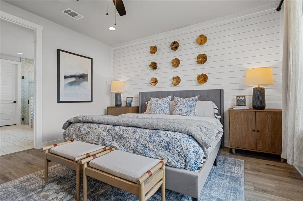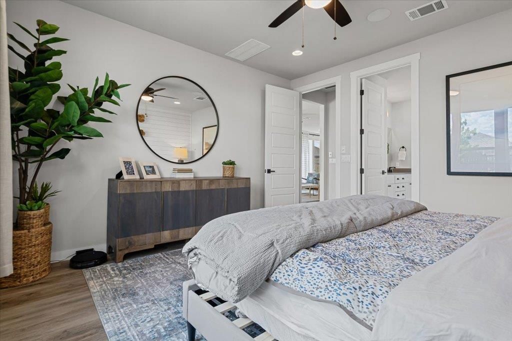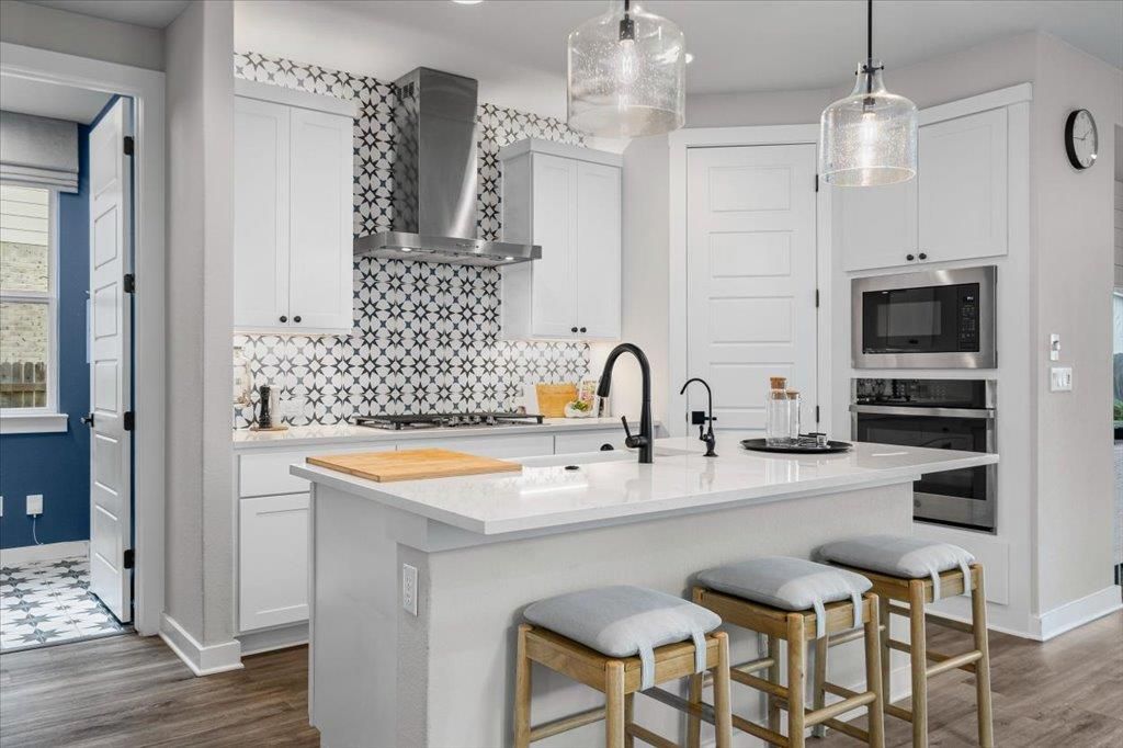 Stunning model-quality home in the highly desirable community of Turner's Crossing. This turn-key home offers 4 bedrooms, 3.5 baths showcasing an open-concept layout designed for entertaining, with exceptional craftsmanship and designer finishes throughout. Impressive curb appeal welcomes you with lush landscaping and a modern exterior. Inside, a soaring entryway opens to a bright, spacious living area that flows seamlessly into the chef's kitchen and dining space. The kitchen features quartz countertops, a center island with seating, modern tile backsplash, apron sink, and stainless steel appliances. The luxurious primary suite is tucked privately on the main level and includes a spa-inspired bath with soaking tub, seamless glass walk-in shower, dual quartz vanities, and a large walk-in closet. Upstairs offers a spacious bonus/game room, two secondary bedrooms with a shared full bath, and an additional guest suite with private en-suite"”perfect for extended family or visitors. Enjoy relaxing or entertaining in the private backyard on the large covered patio, ideal for evening sunsets. As the former model home, every detail has been thoughtfully curated"”no expense spared in design or upgrades, including Tesla car charger, security system, water filter system and water softener. Enjoy a community with resort style amenities; pool, playground, park and walking trails. Great location just minutes from all the best that both Austin and Buda have to offer. Full furnishings available.